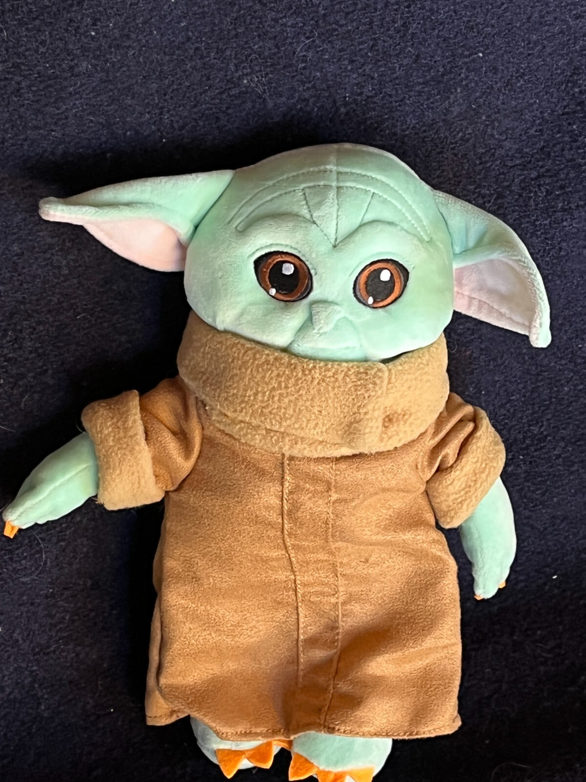 Gently Used Mint Green Plush Star Wars Baby Yoda in Tan Coat Stuffed Character