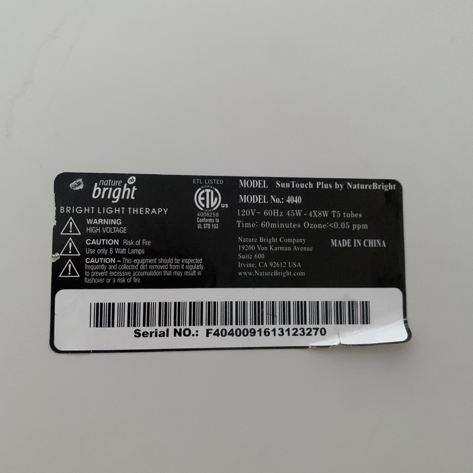 Nature Bright 4040 Sun Touch Plus Light Ion Therapy Lamp w/ Timer 10000 LUX
