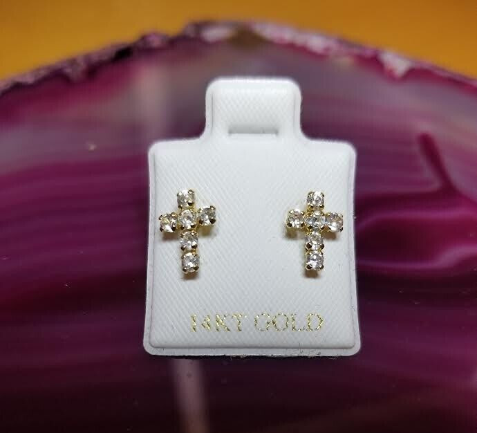 14k Yellow Gold CZ Stud Cross Earrings 0.7mm for Infant/Women/Men/Ladies