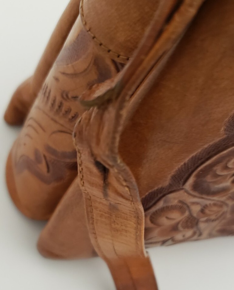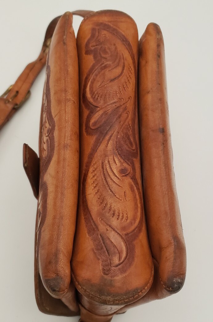 Vintage Hand Tooled Leather Purse Handbag Shoulder Strap