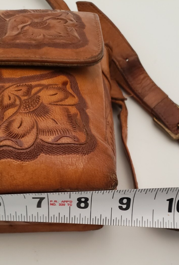 как выглядит Vintage Hand Tooled Leather Purse Handbag Shoulder Strap фото