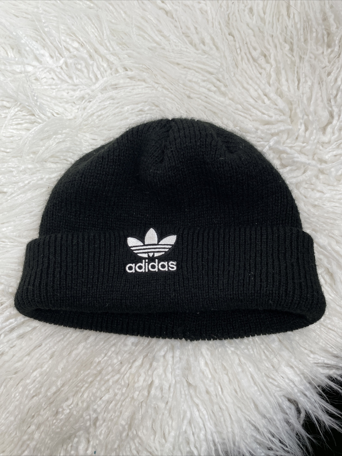 Adidas Originals Knit Winter Beanie Cap Toboggan Hat Black/White Logo OSFM Adult