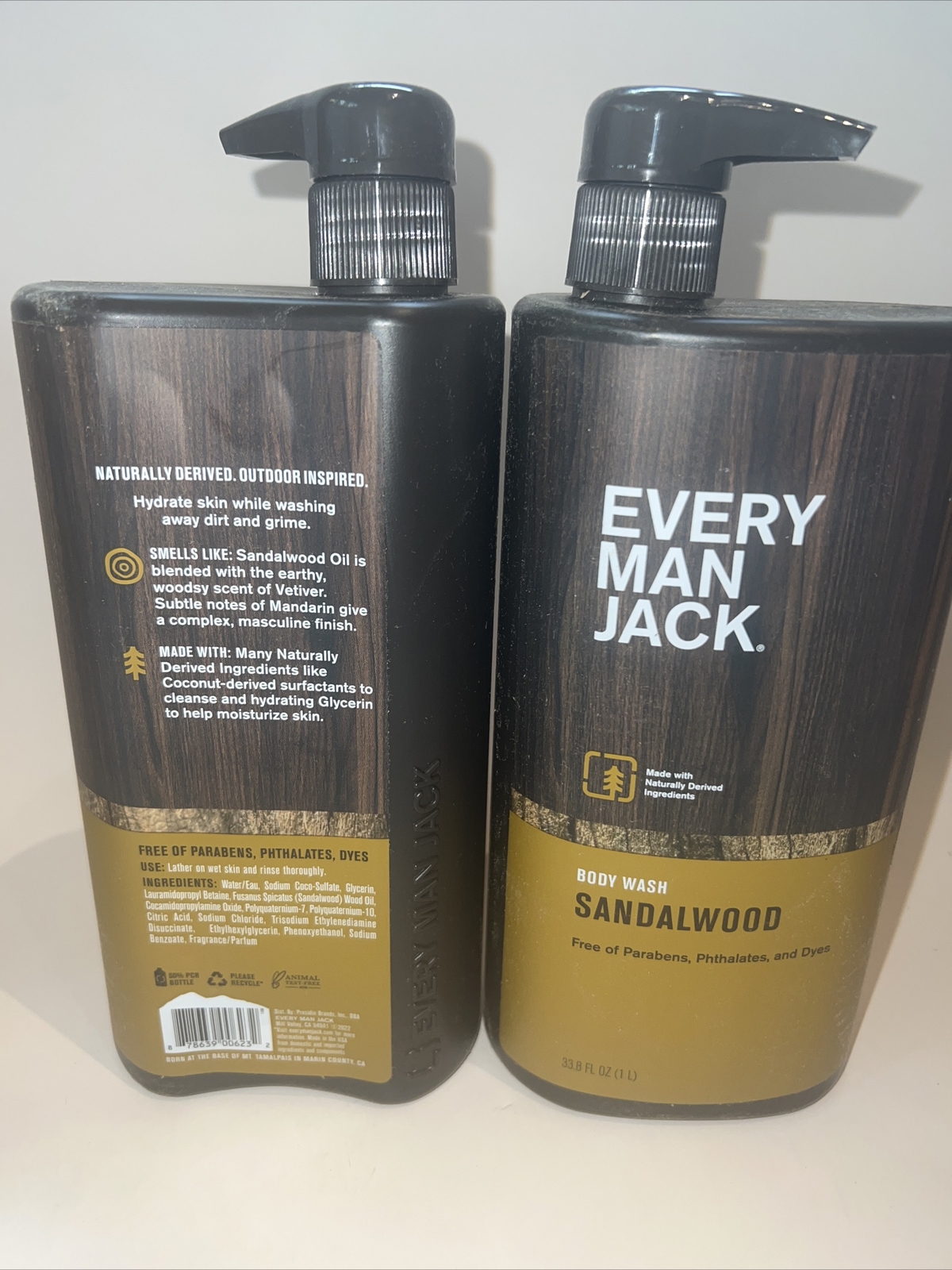 2 Every Man Jack Body Wash Sandalwood Body Wash - 33.8 fl oz. QTY:2 Free Ship