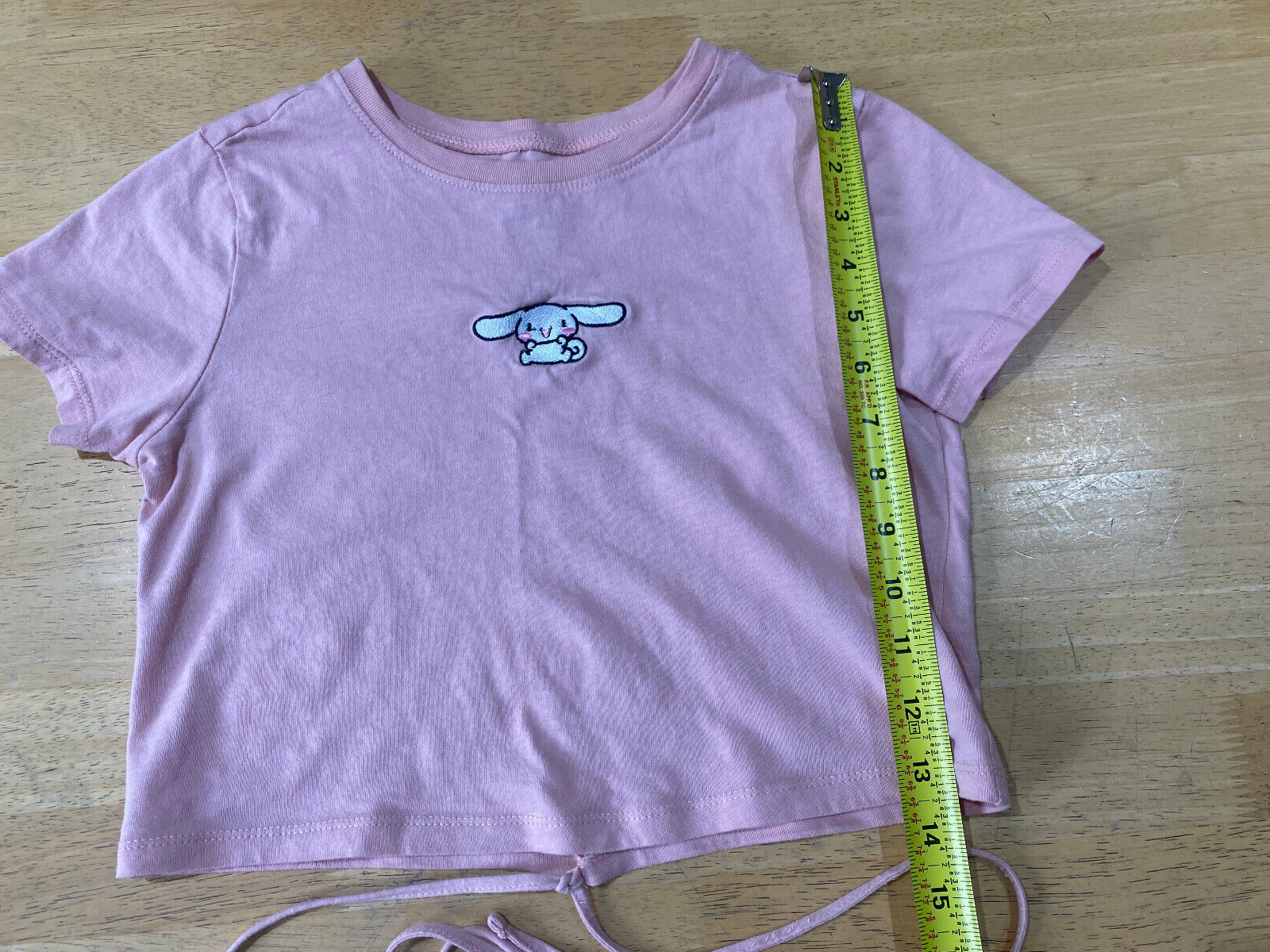 как выглядит Sanrio Cinnamoroll Embroidered PINK Cropped T-shirt w/ Waist Tie - Womens Sz XS фото