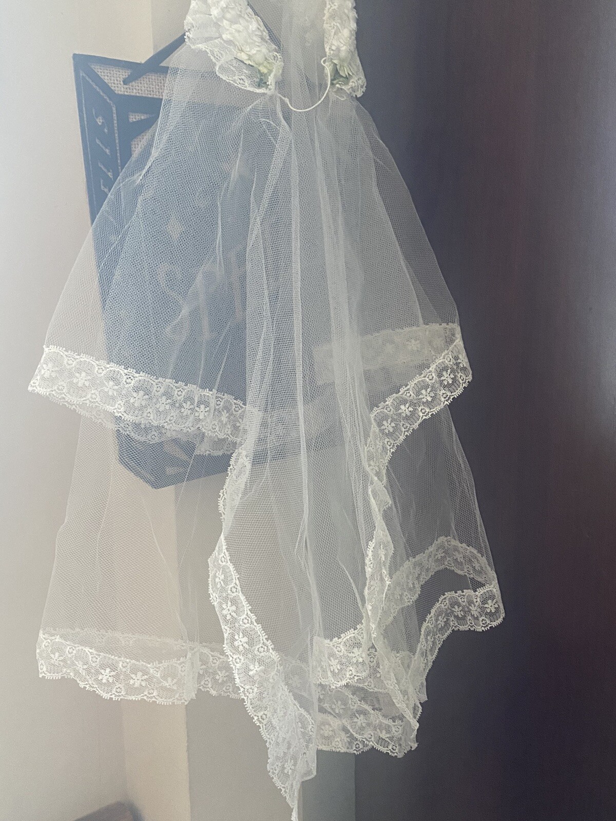 Vintage Girls First Communion Double Veil Flowers Lace Headband