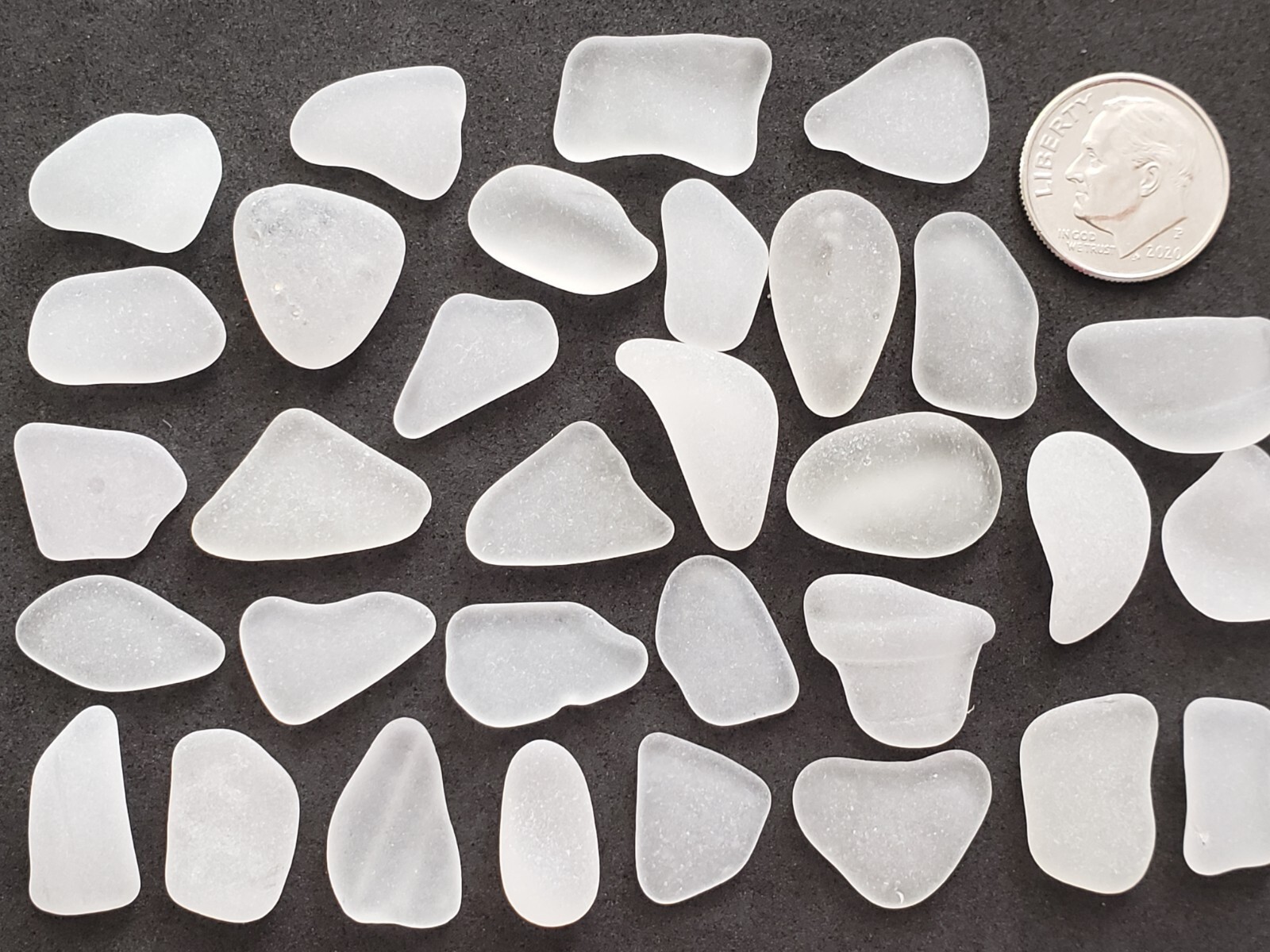 GENUINE PURE BEACH SEA GLASS SURF TUMBLED WHITE CLEAR SNOW FROSTED SMALL V9