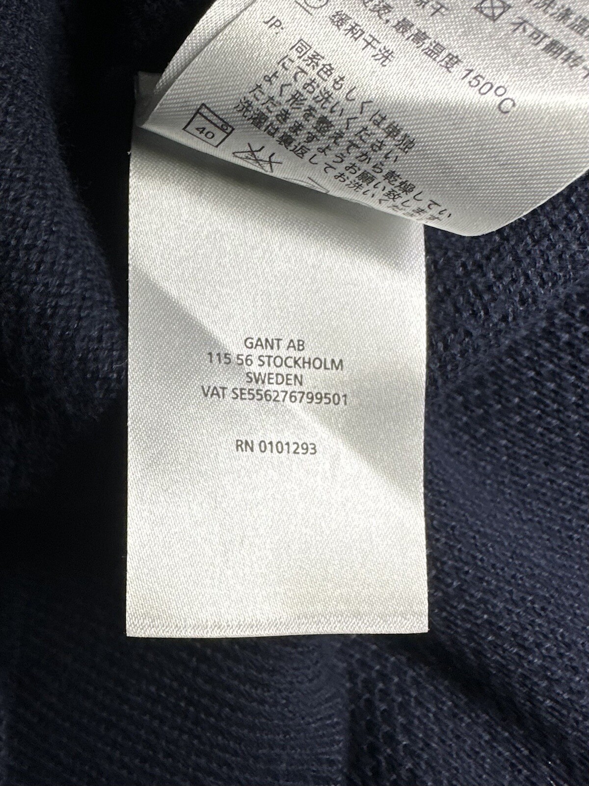 GANT Men s Sweater PREMIUM COTTON Solid Navy Blue Textured Crew Neck L/S Size S