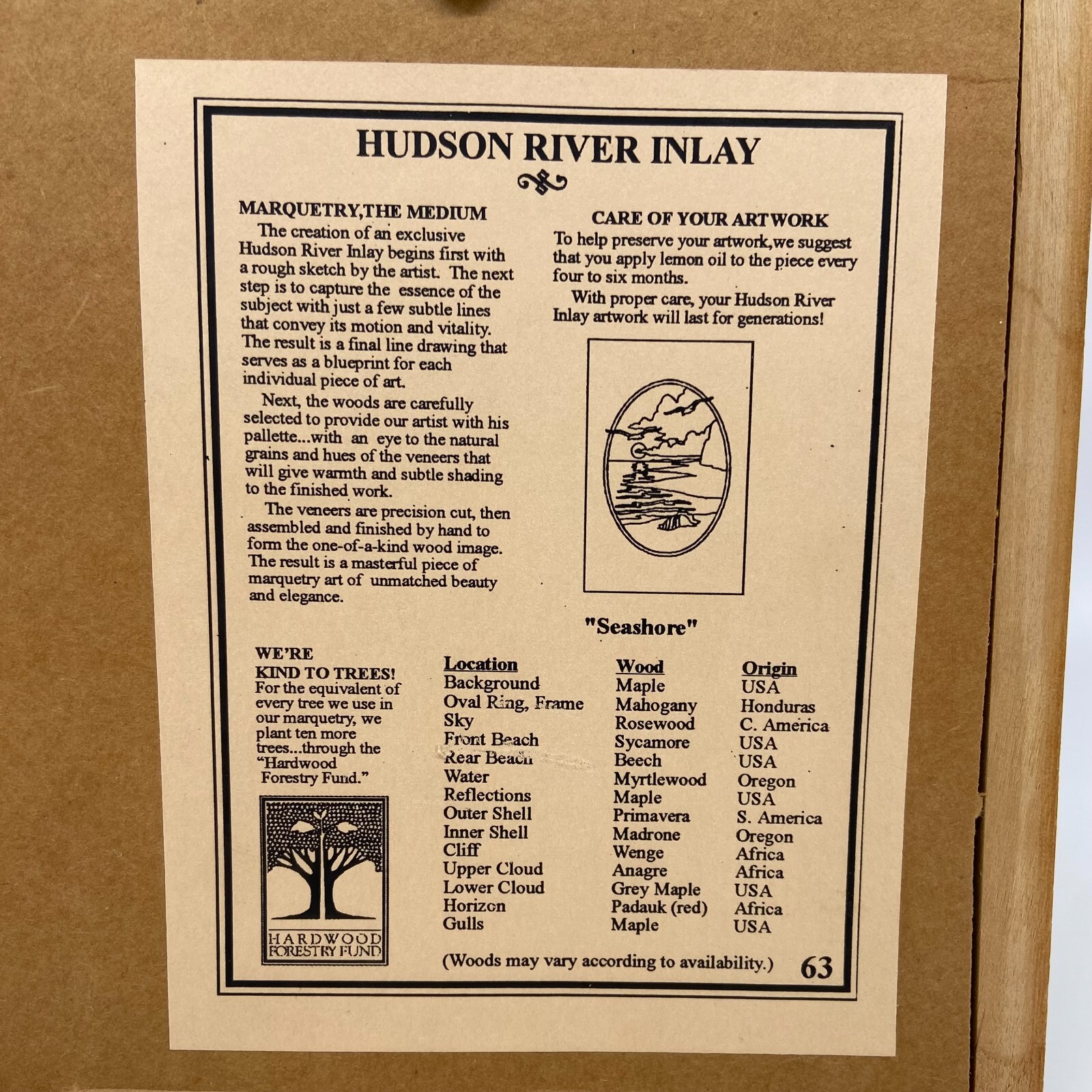 • Hudson River Inlay Art Framed Marquetry "Seashore" by Jeff Nelson