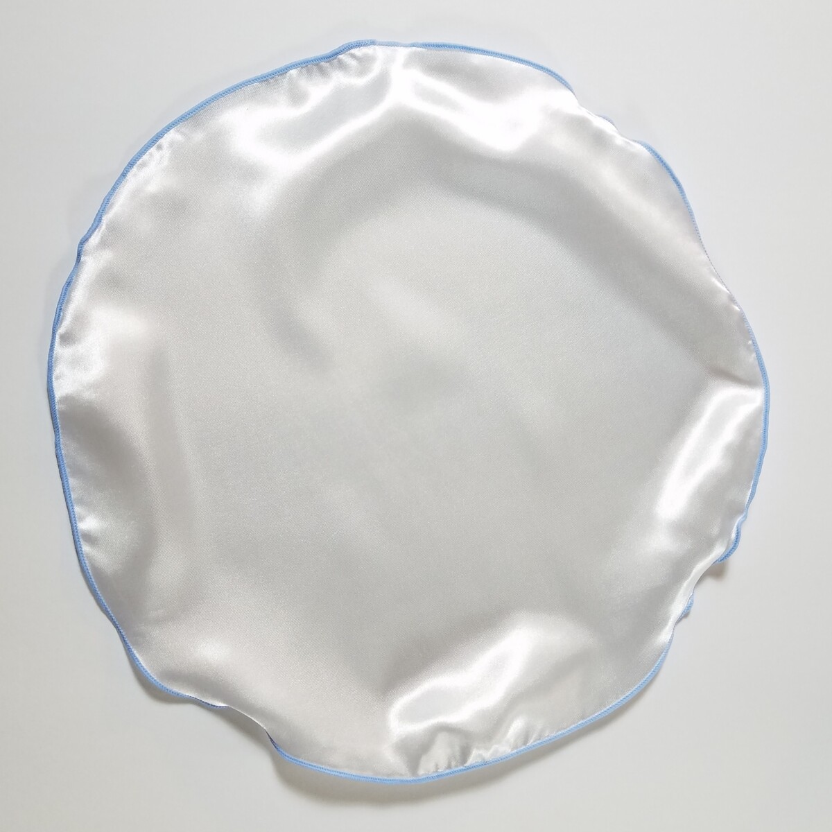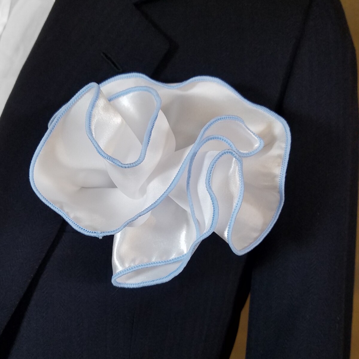 как выглядит Mens 2-in-1 Pouf Round Pocket Square - Navy, Black or Royal on White Satin фото