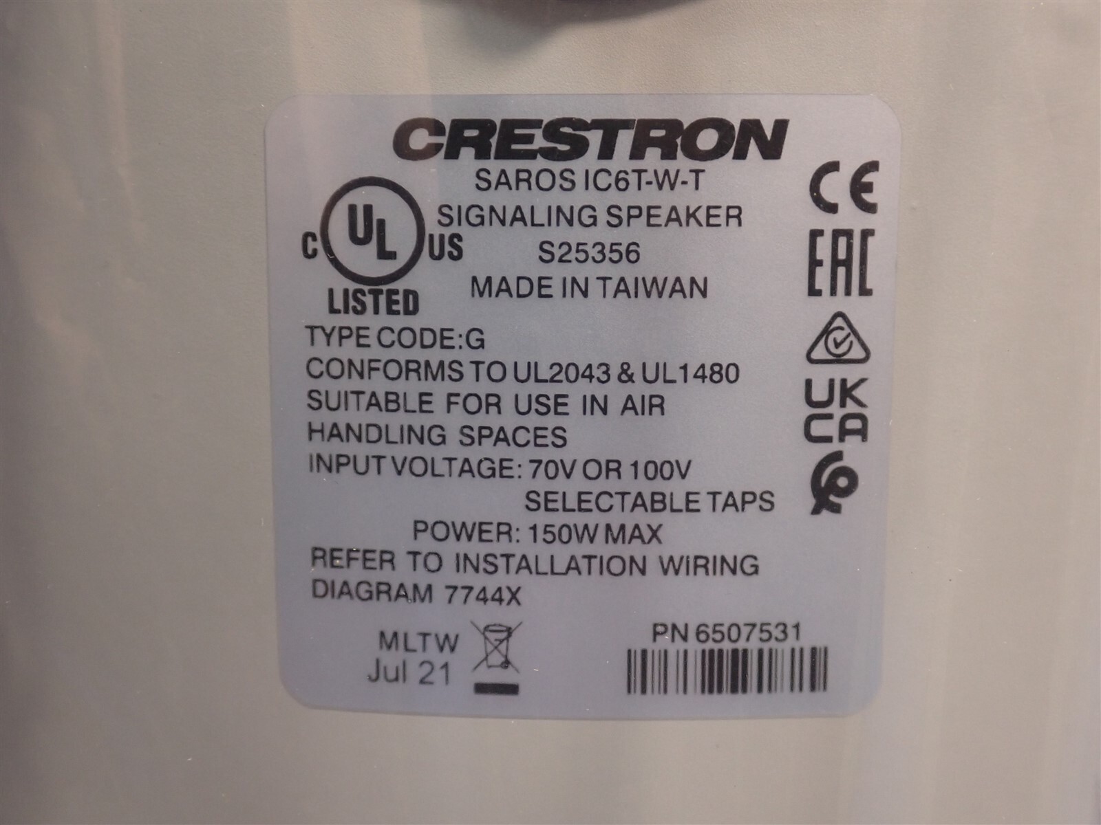 Crestron Saros IC6T-W-T 6.5 2-Way In-Ceiling Speaker White Txtured Single E39