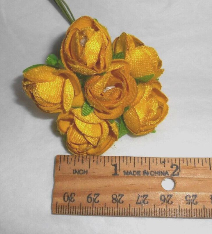 Golden YELLOW Velvet millinery ROSE cluster of 6 DOLL sz Sewing, hats crafts