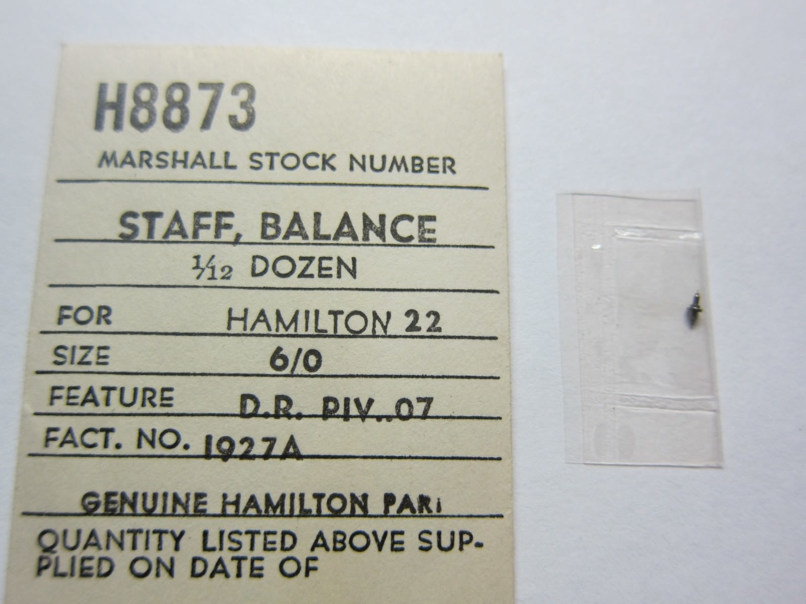 Hamilton 6/0 size Balance Staff D.R. pivot .07 Fact.No.1927A