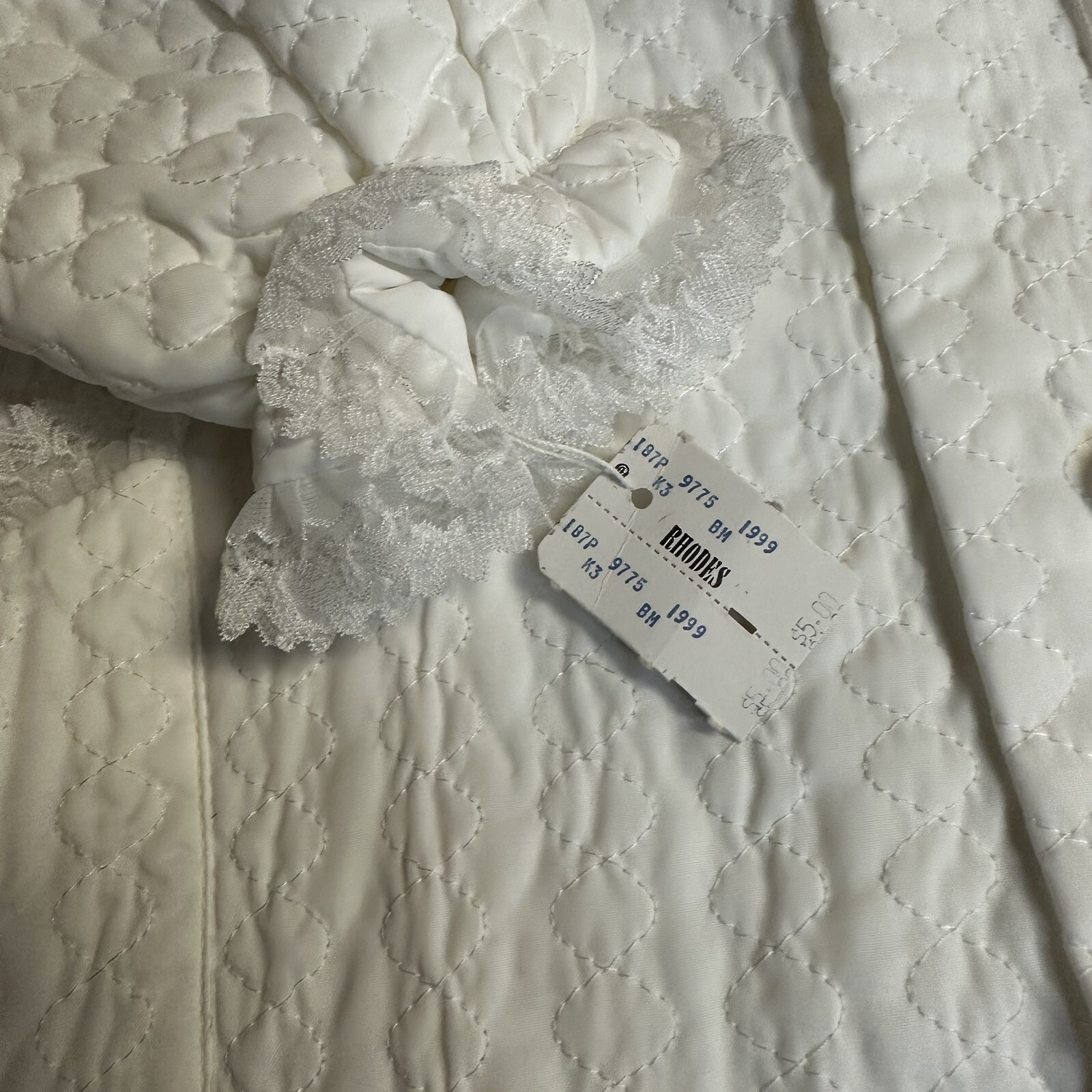Vintage Girls 8 Long Quilted Satin Nylon Lace Robe White Made in USA NEW