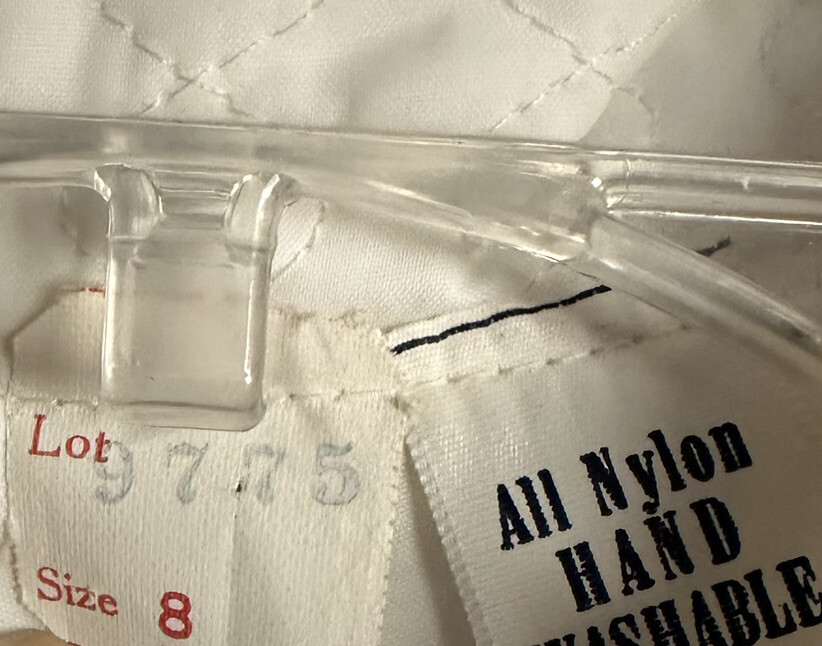 как выглядит Vintage Girls 8 Long Quilted Satin Nylon Lace Robe White Made in USA NEW фото