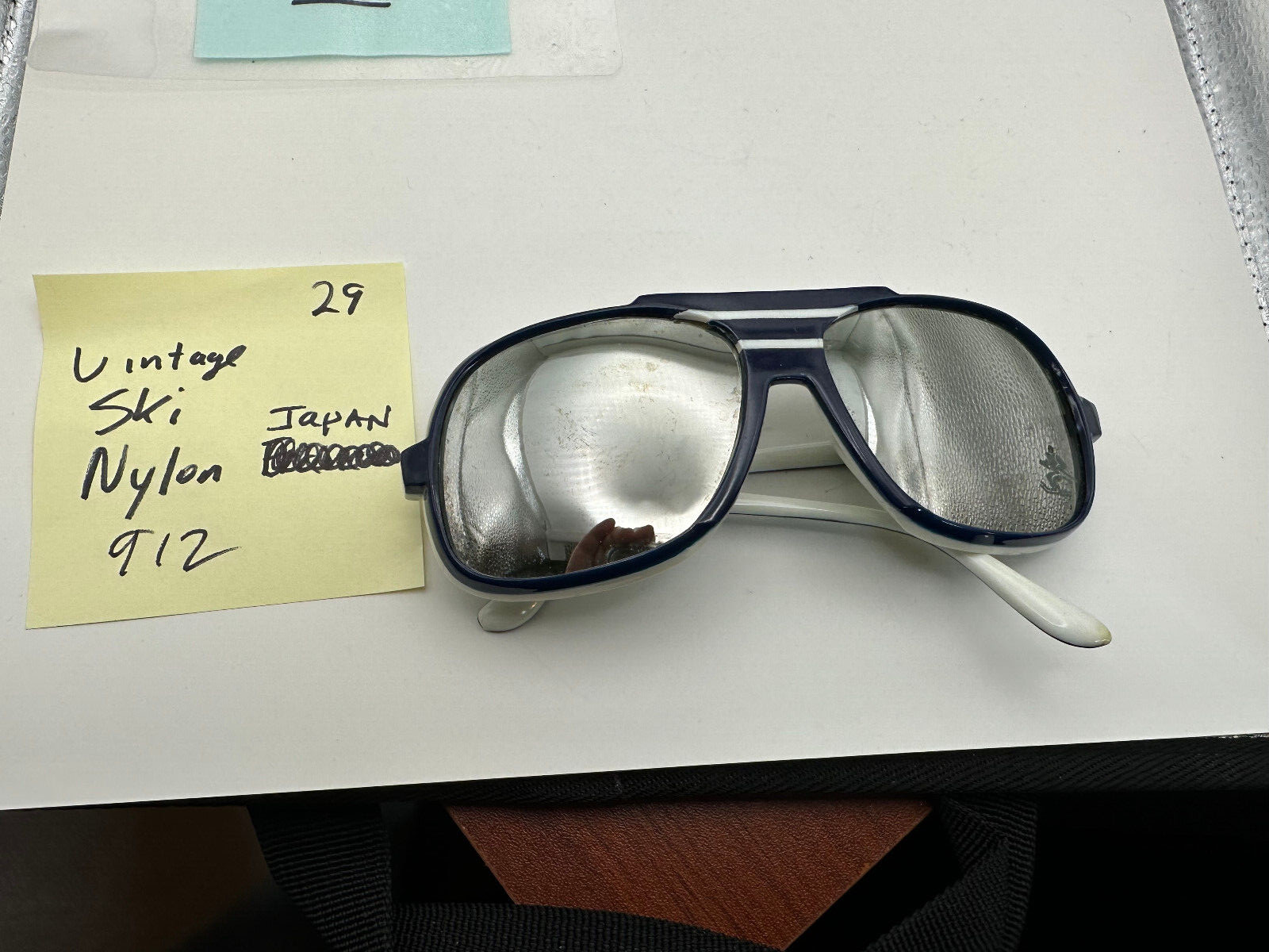 как выглядит VINTAGE SKI MIRRORED 912 AVIATOR SUNGLASSES JAPAN NYLON BLUE WHITE SG 29 фото