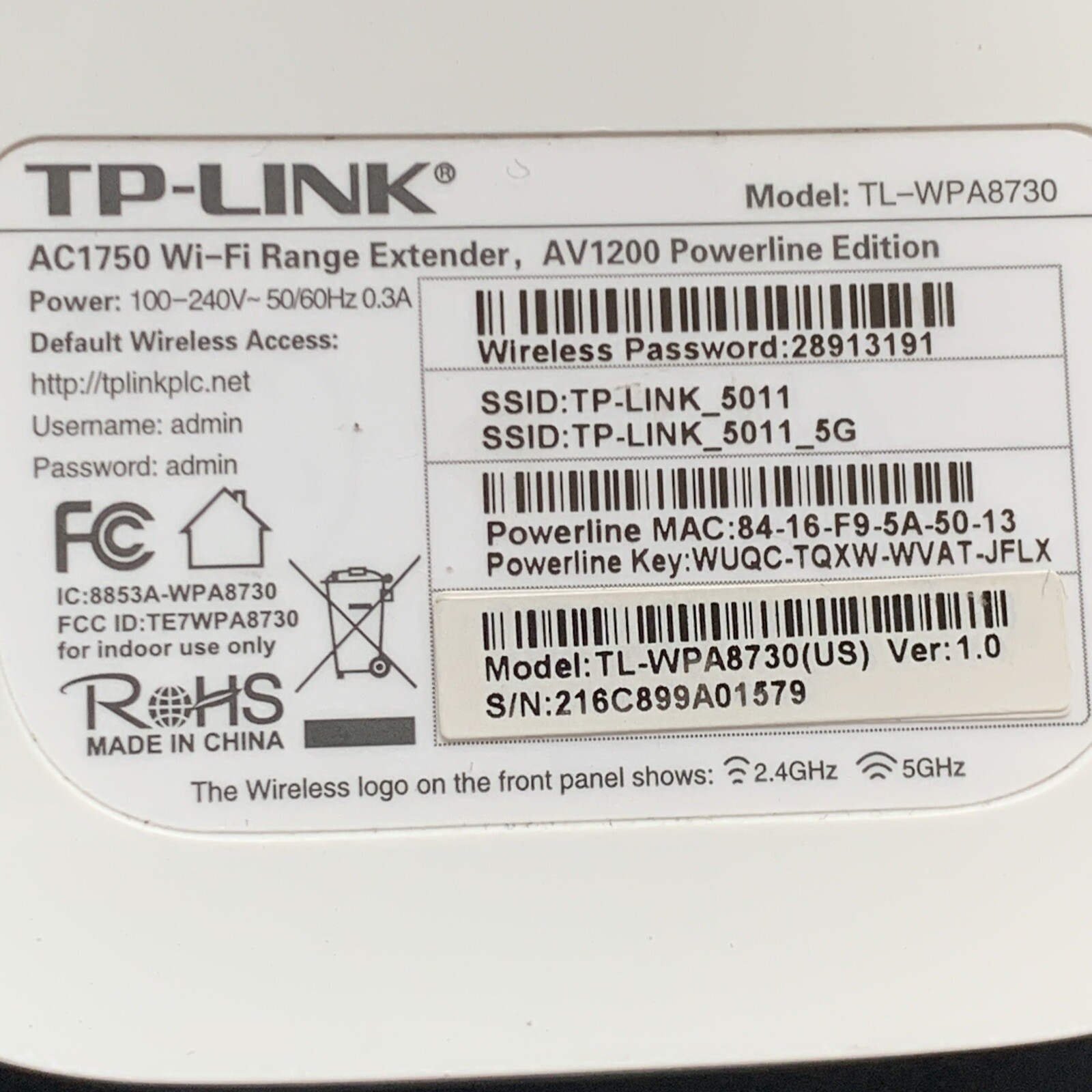 TP-LINK Powerline Kit AC1750 Wi-Fi Range Extender AV1200 TL-WPA8730 TL-PA8010P