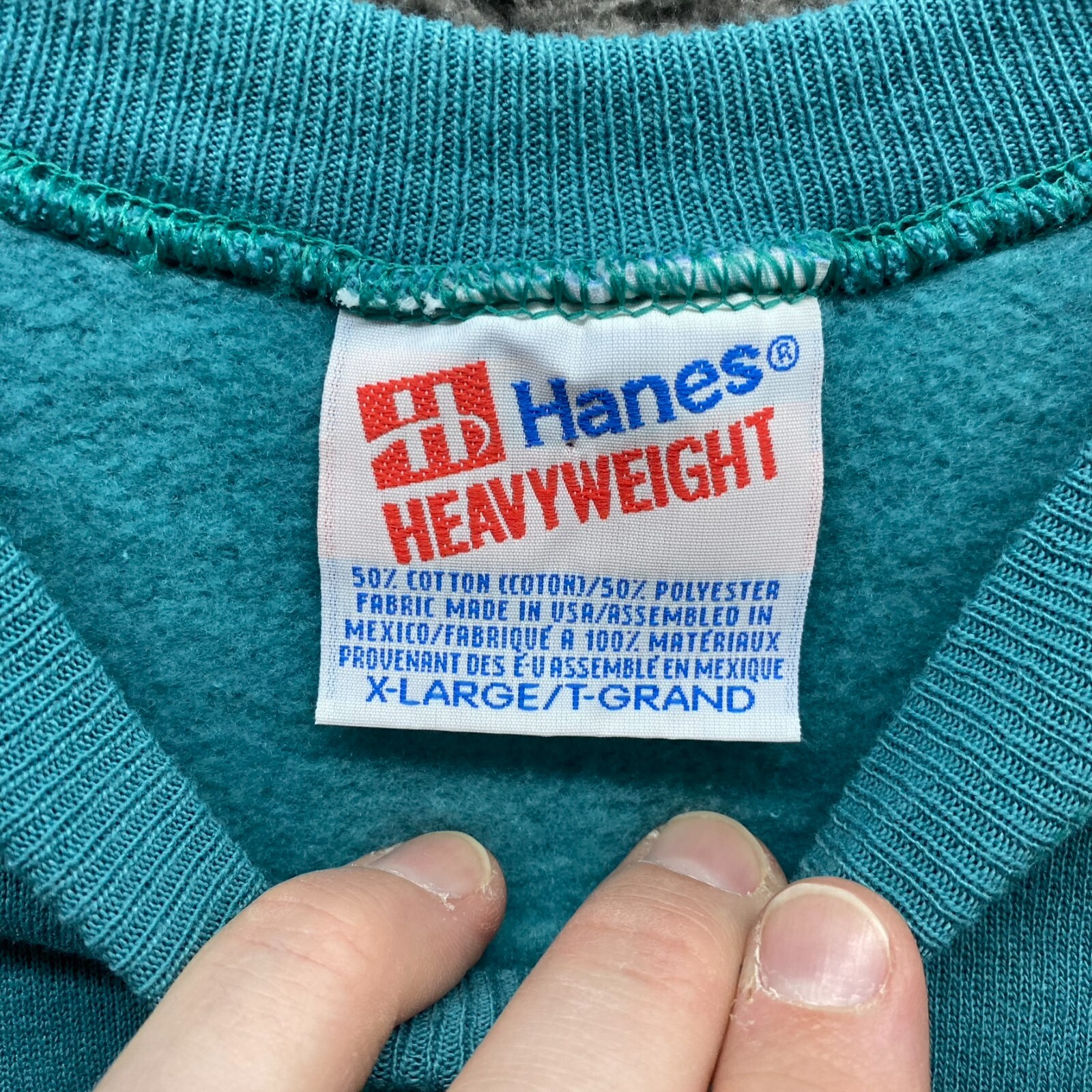 Vintage 80s/90s Teal Green Hanes Heavyweight Blank Sweatshirt XL USA Fabric