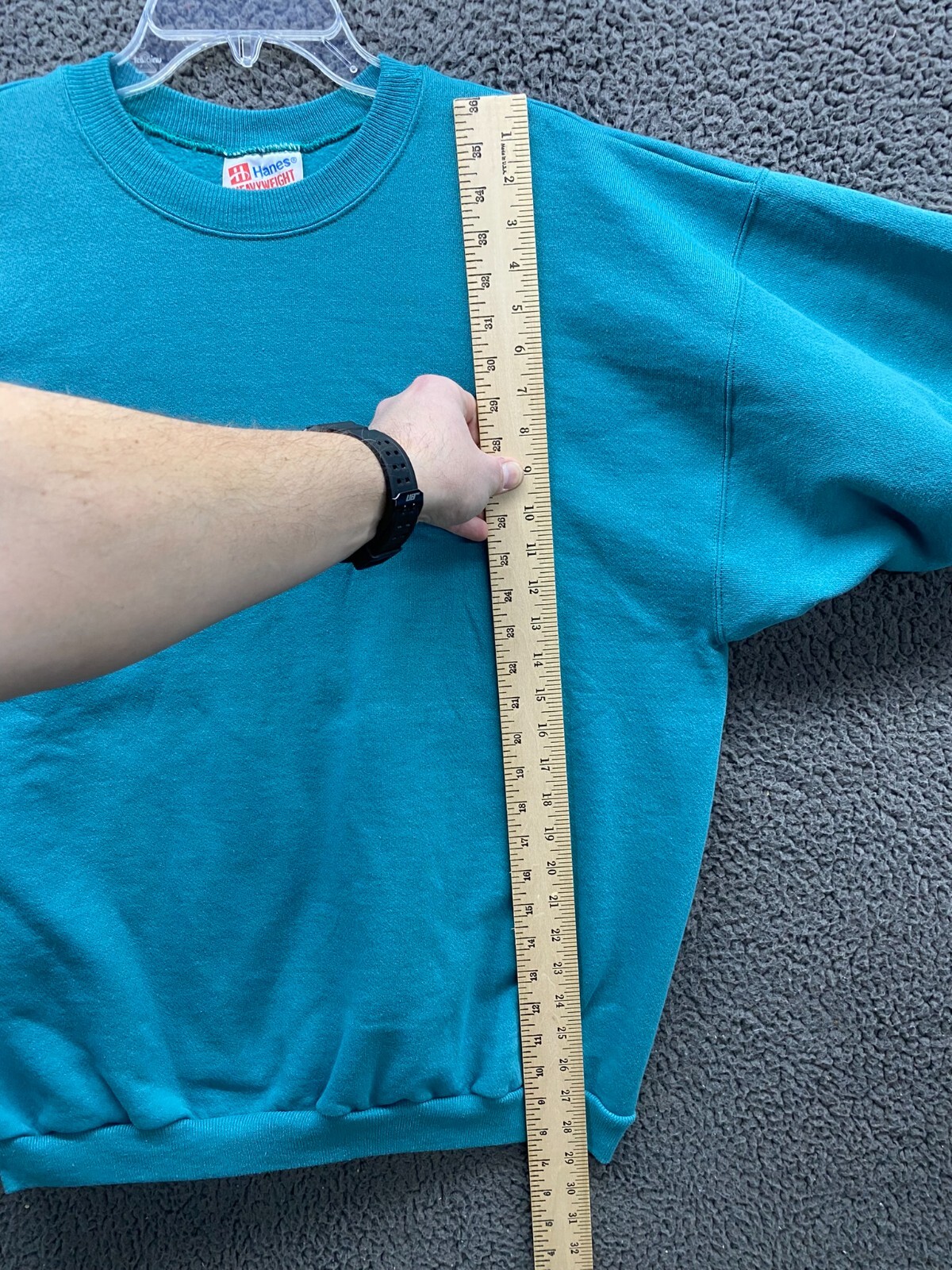 как выглядит Vintage 80s/90s Teal Green Hanes Heavyweight Blank Sweatshirt XL USA Fabric фото