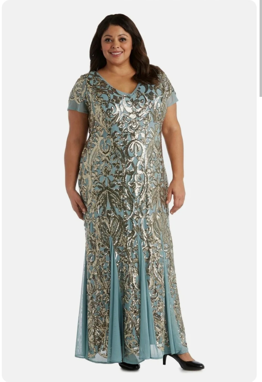 как выглядит R M Richards Womens Sequin-Embellished Evening Gown  Short Sleeve One Piece. фото