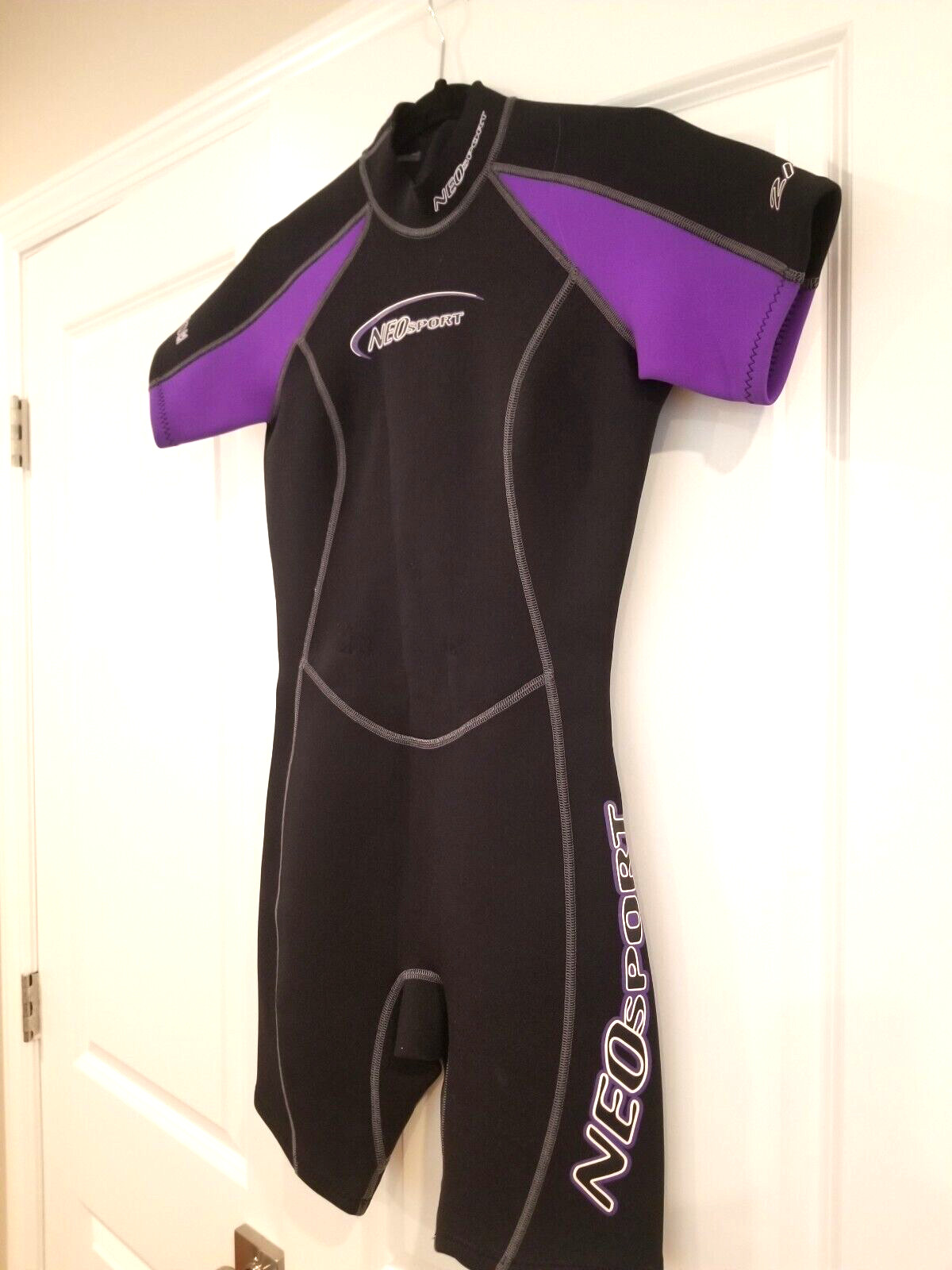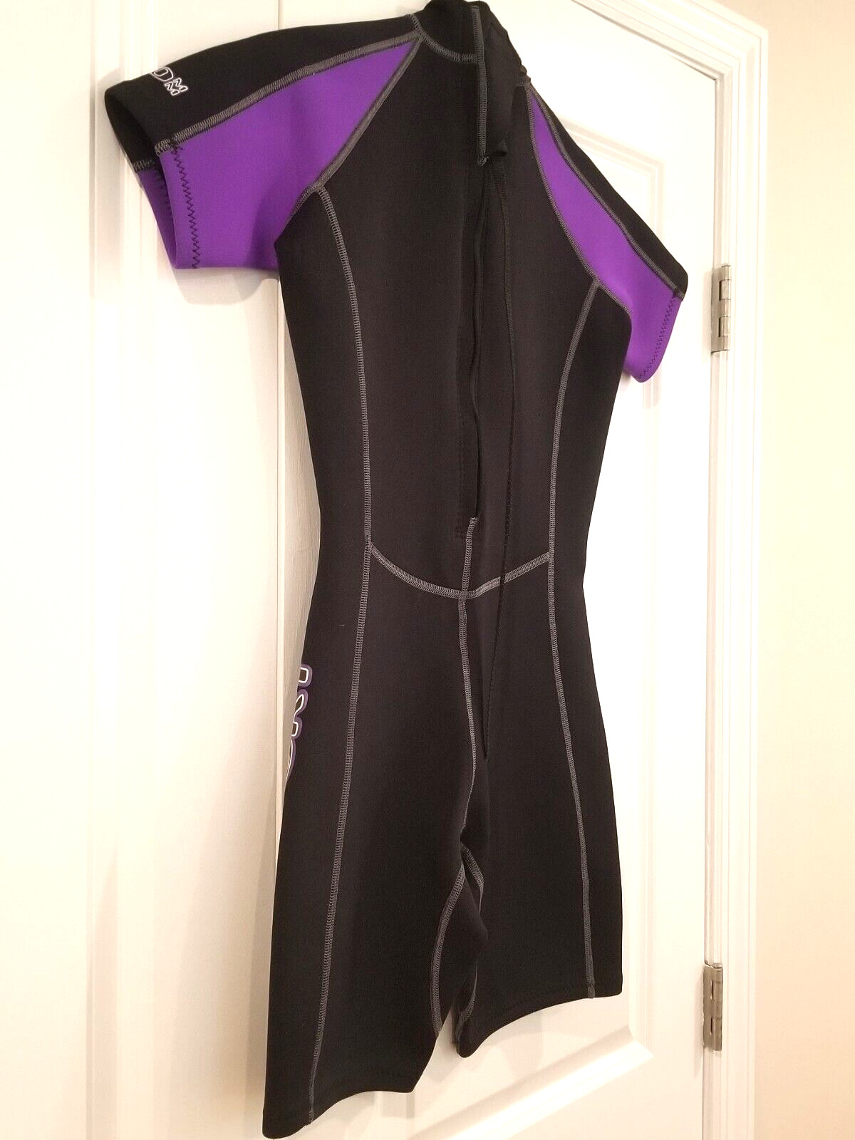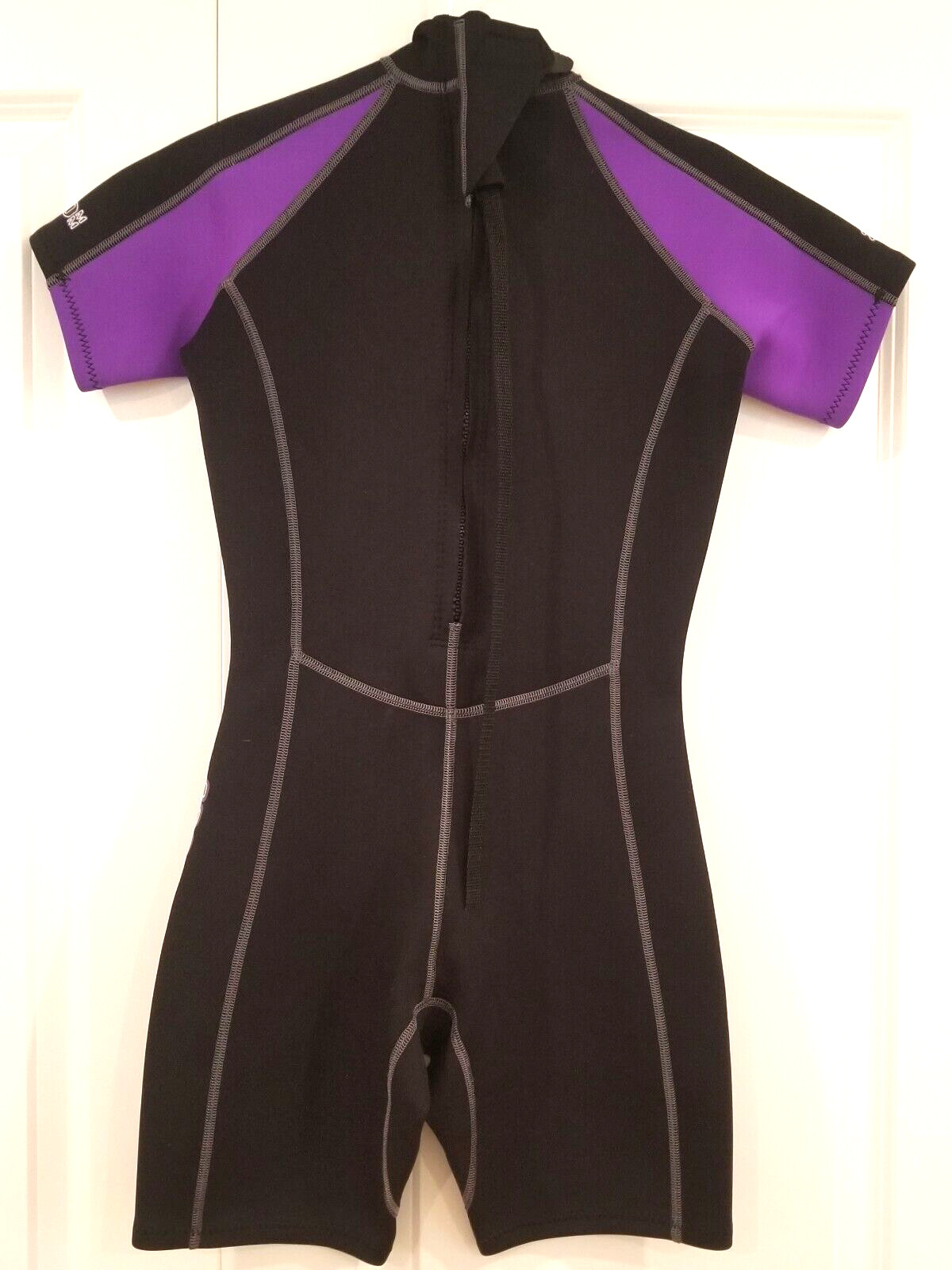 NeoSport 2/0 MM Women's Wetsuit Short Leg Arm Size 6 Black Purple Neopren Nylon