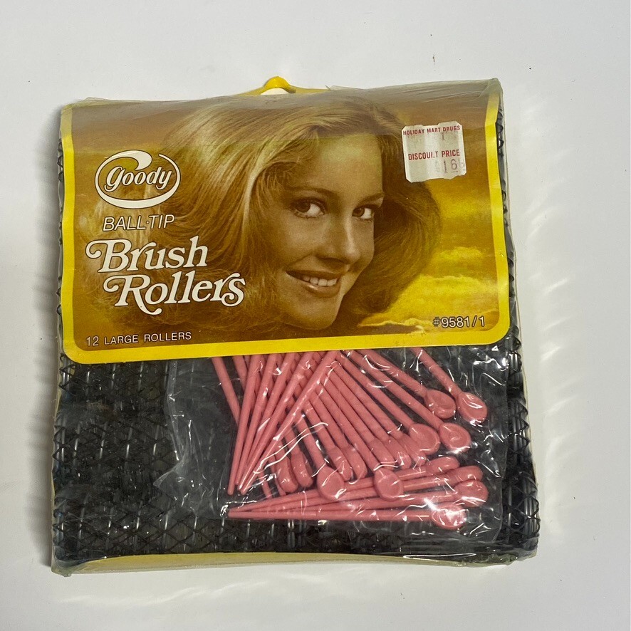 Vintage Goody Brush Rollers w/ Pins Ball Tip 12 Large 9581 '77Retro, Set of 3