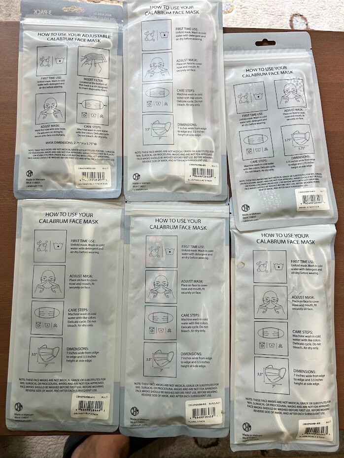 Face Masks Reusable 3 and 6 Pack Kids 3 Reversible Cotton,Lot Of Assor