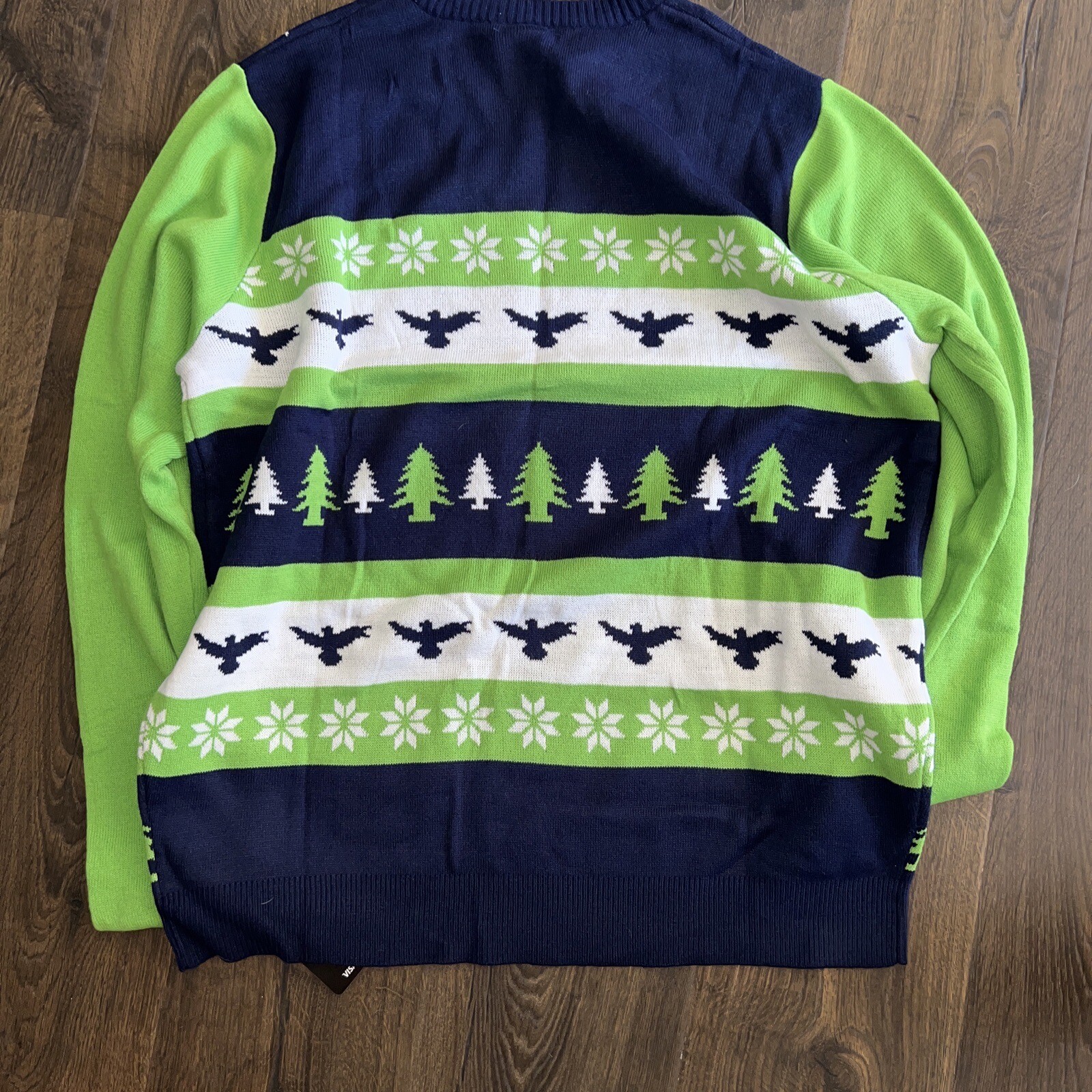 как выглядит Seattle Seahawks Ugly Christmas Sweater Men XL Green Blue New NFL Football фото