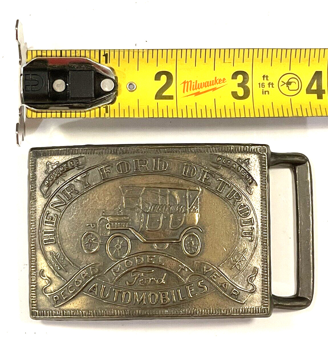 Vintage Henry Ford Detroit Automobiles Model T Brass Belt Buckle