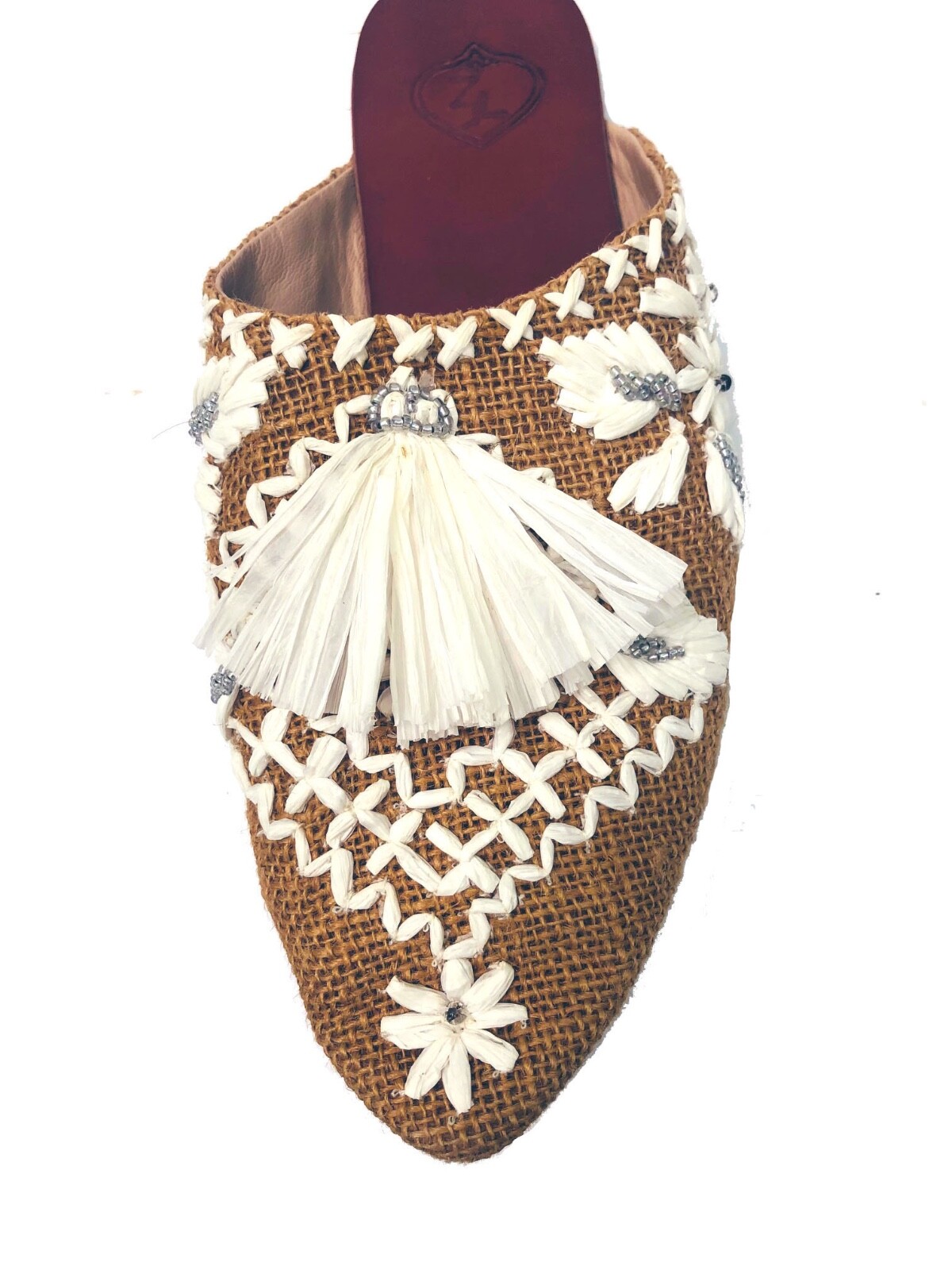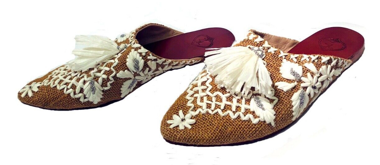 как выглядит Anthropologie Z L India Tan Jute Burlap Ivory Embroidered Boho Flats Slides 37 фото