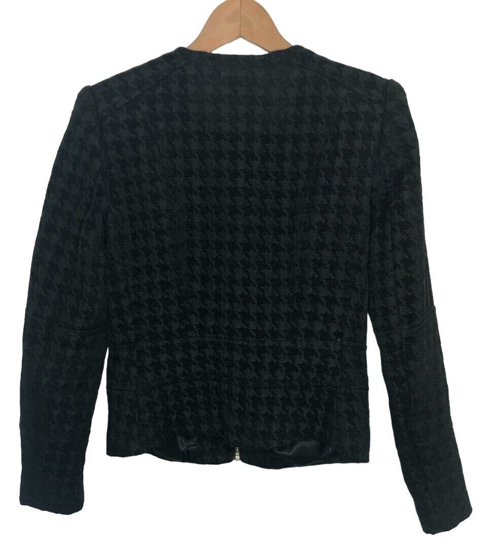 как выглядит Houndstooth Womens US 8 Blazer H M Black Woven Gold Full Zip Pockets Jacket фото