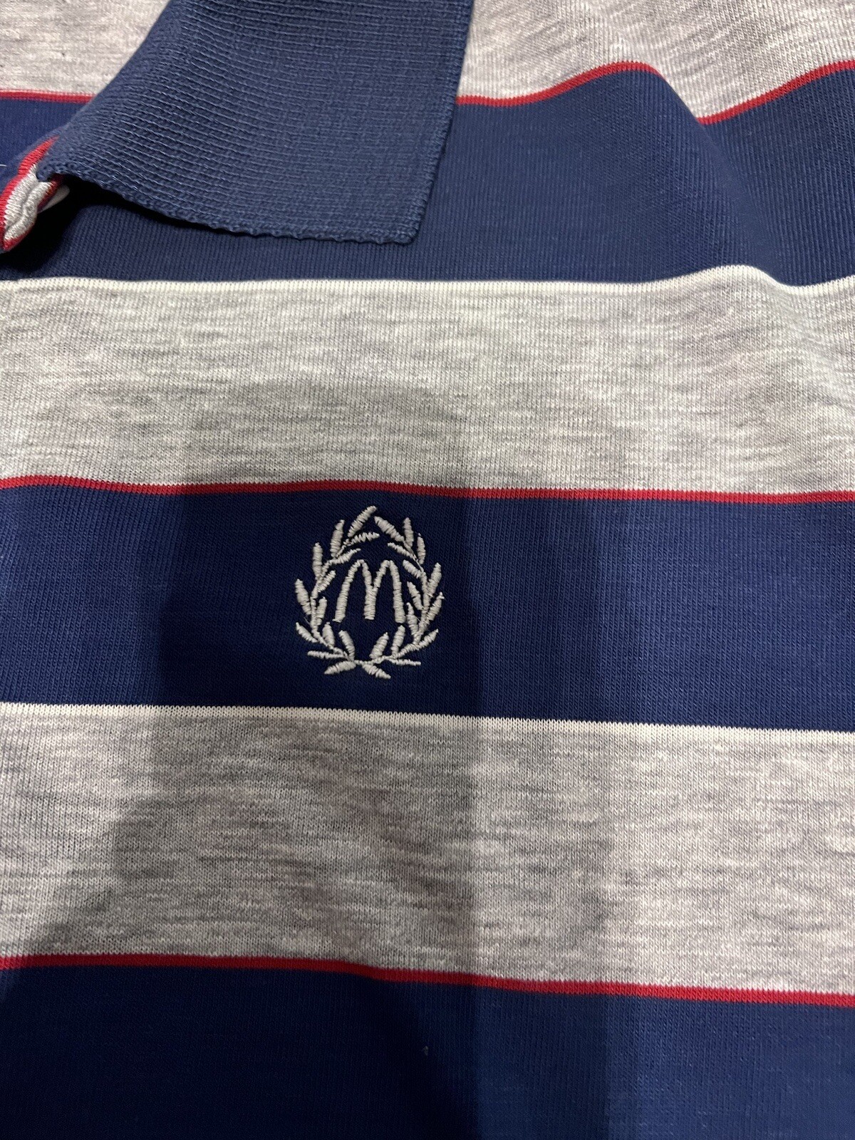 McDonald s Employee Work Polo Shirt Striped Fast Food Large VINTAGE 80s RARE