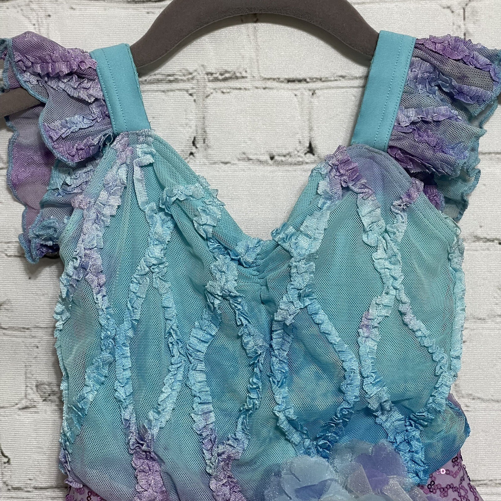 как выглядит Girl s Weissman Dance Costume Dress Size 1C Blue Purple Sequins Tutu фото