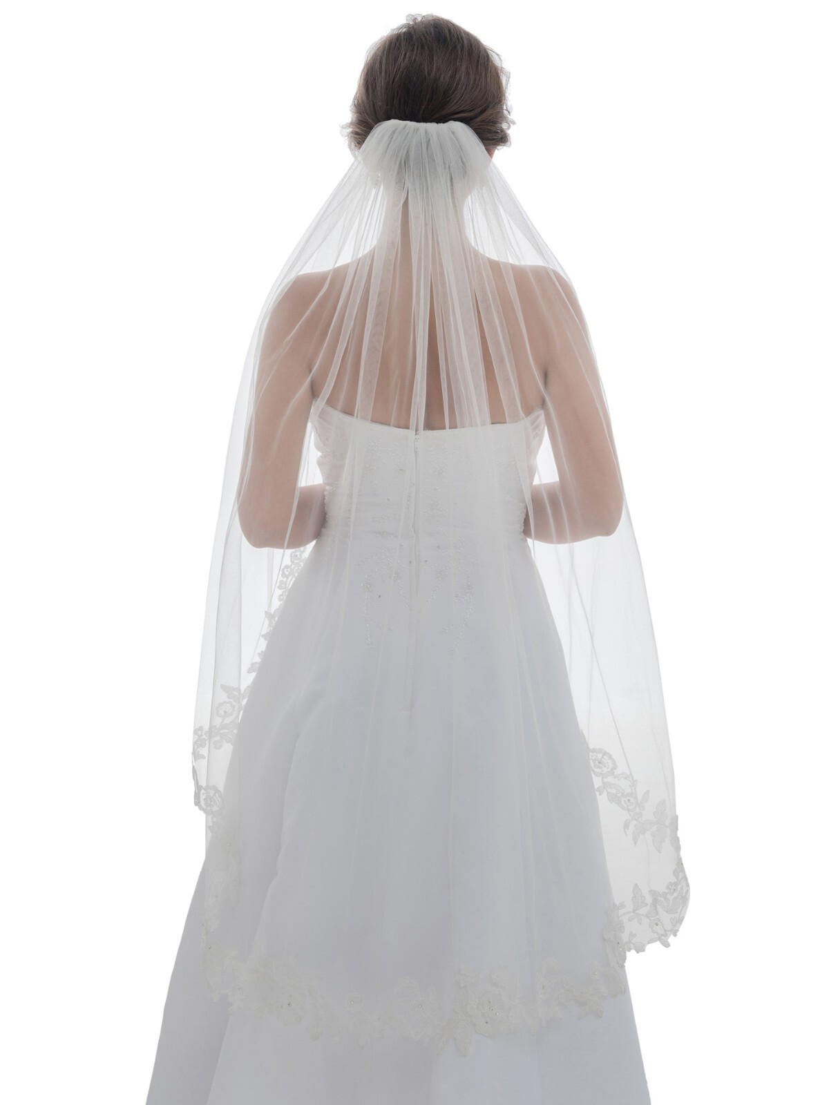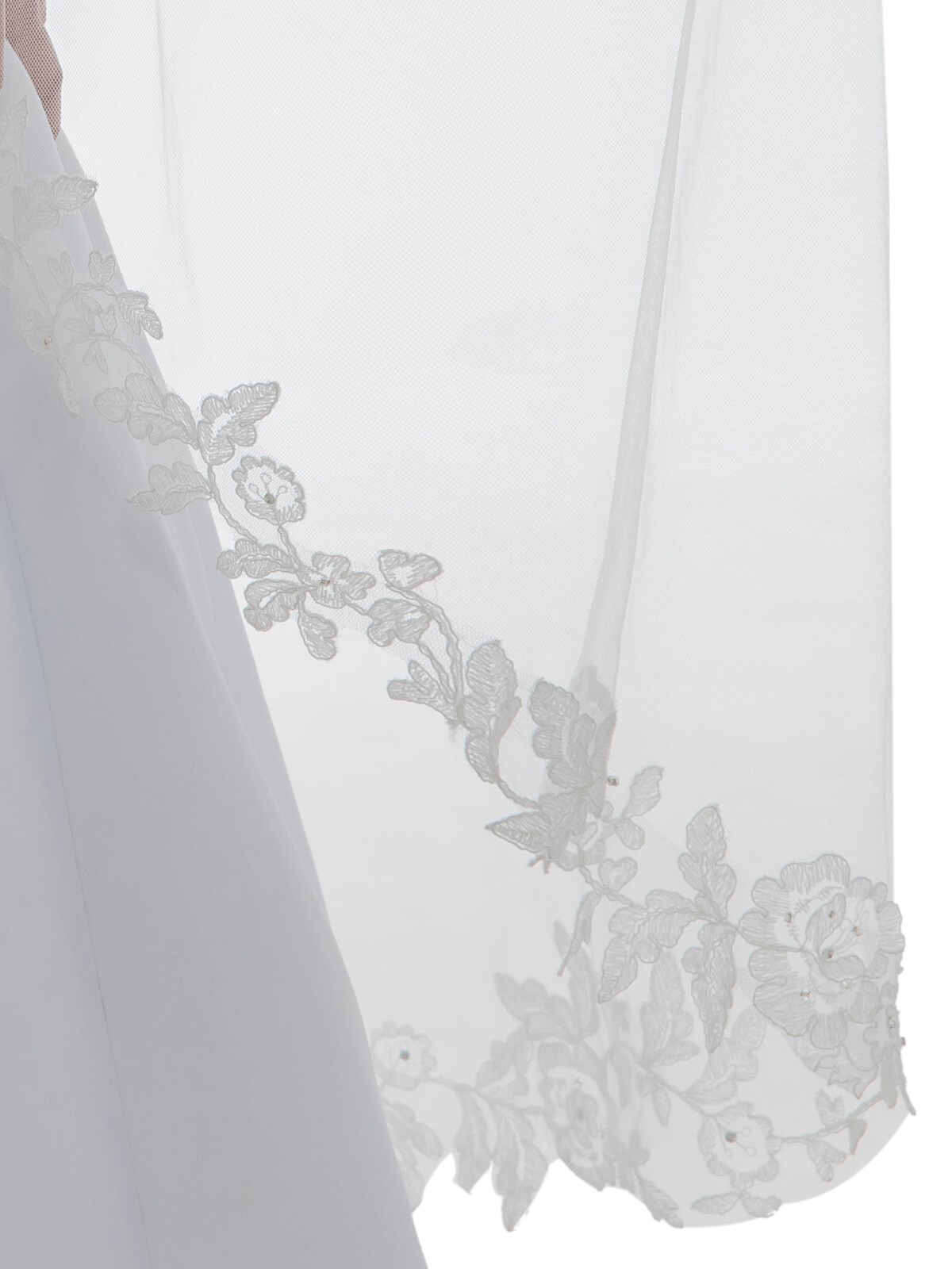 как выглядит 1 Tier Embroidered Floral Lace Crystal Veil For Bridal Shower Wedding Party фото