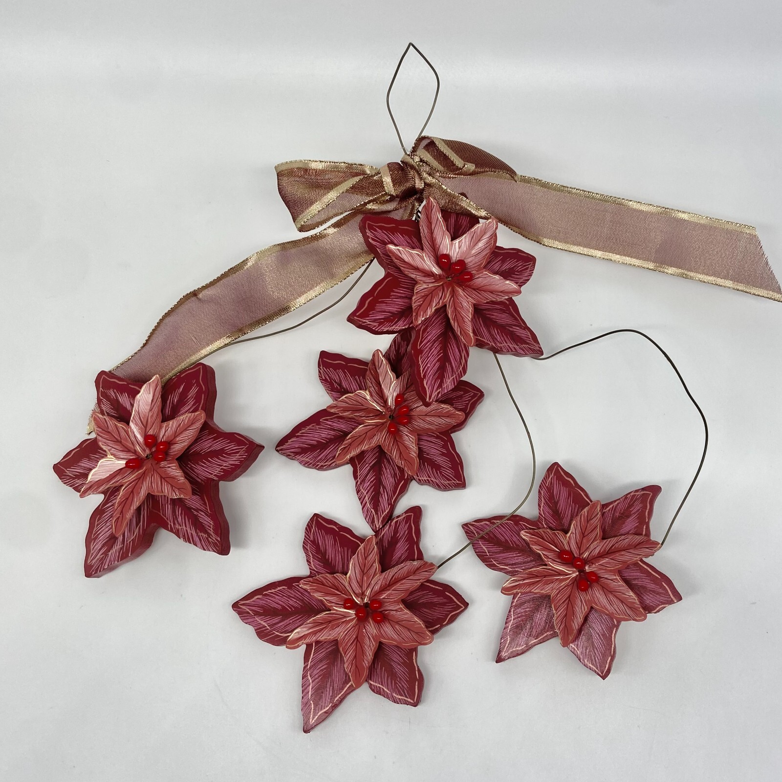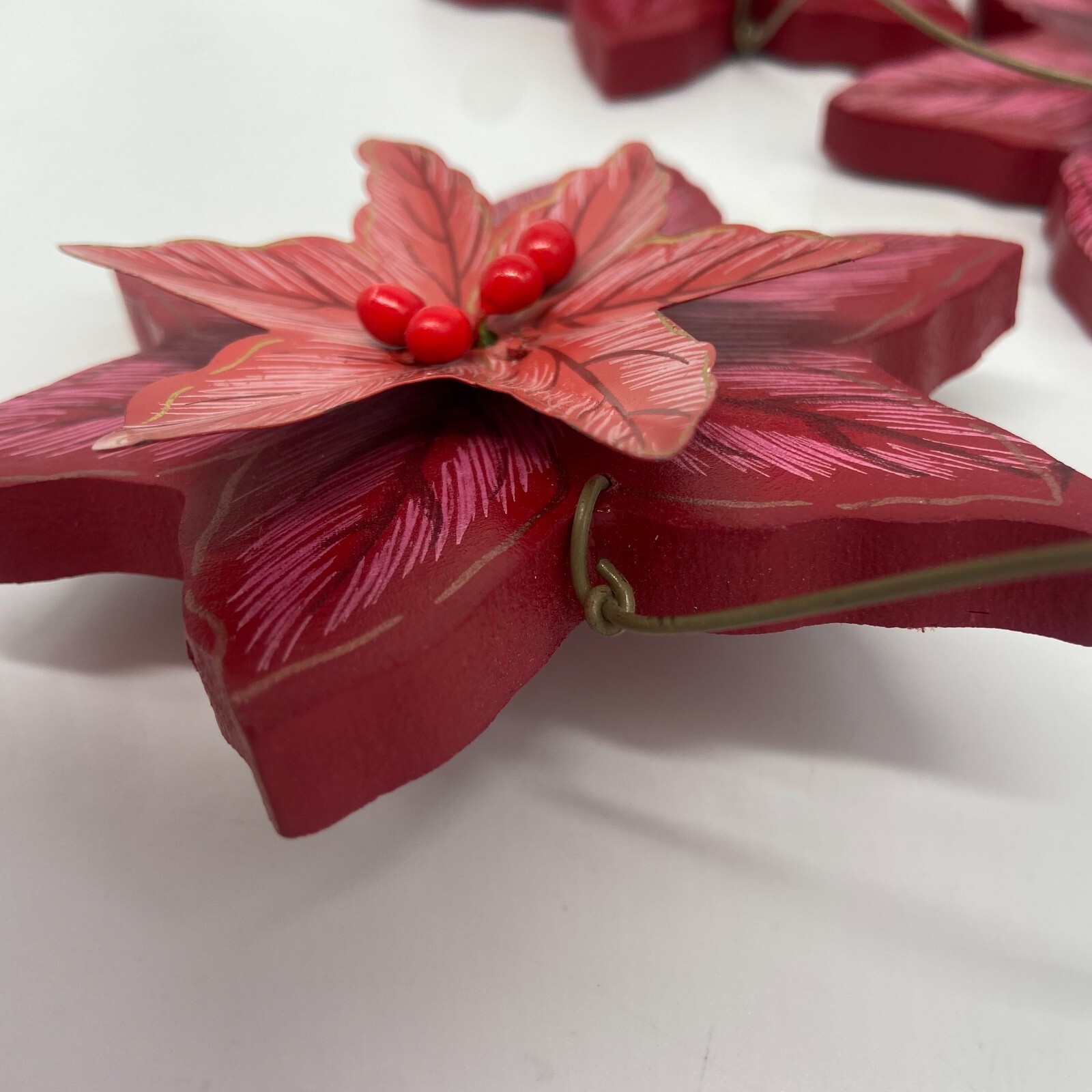 Wooden Poinsettia Flowers Decor Hanging Christmas Decoration Craft Supply