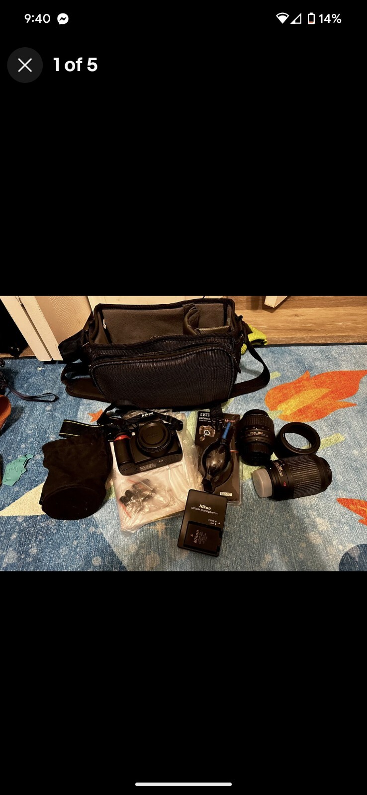 Nikon D3100 14.2MP Digital SLR Camera 18-55mm 55-300mm Battery Charger Bag
