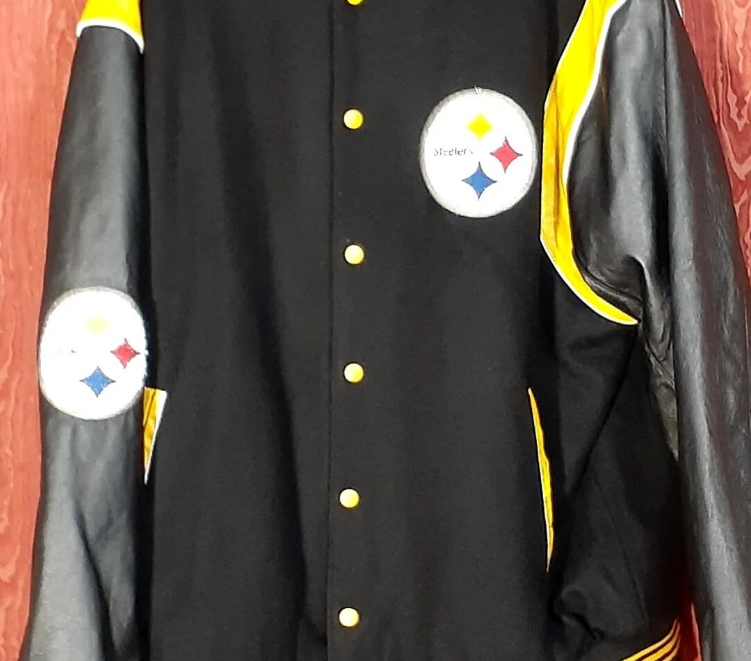 • Vintage NFL Pittsburg Steelers REVERSIBLE Varsity Letterman Jacket Size XXL Wool