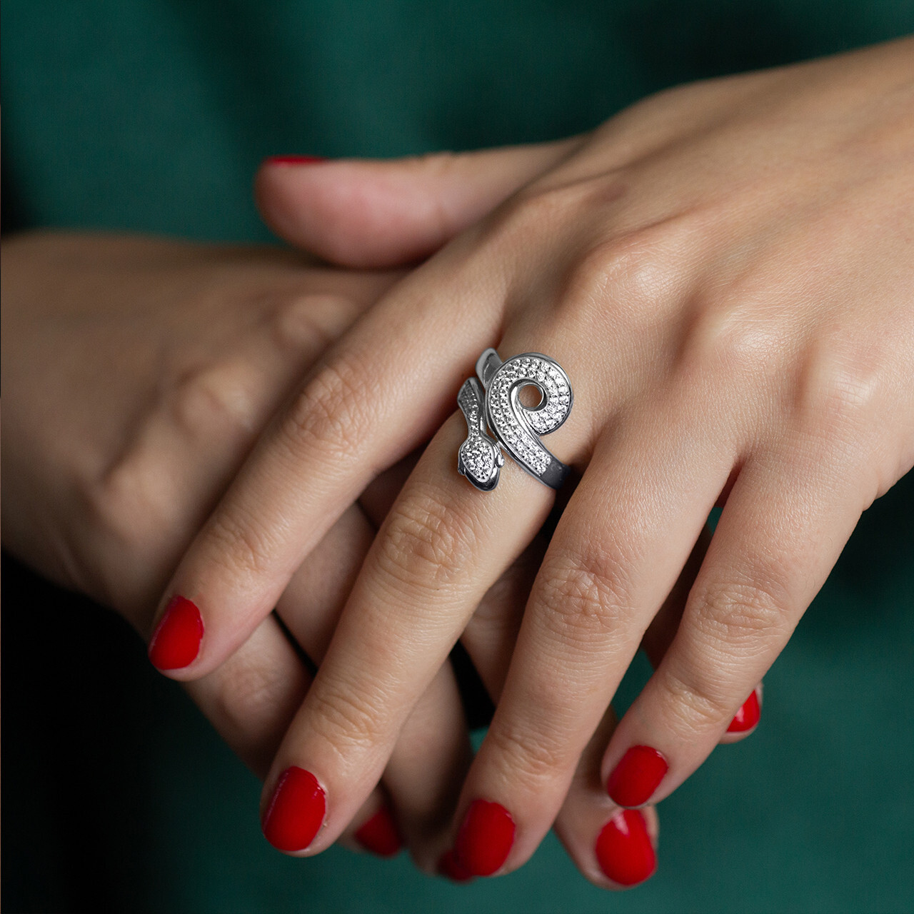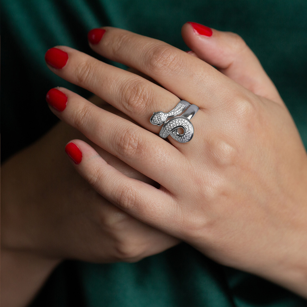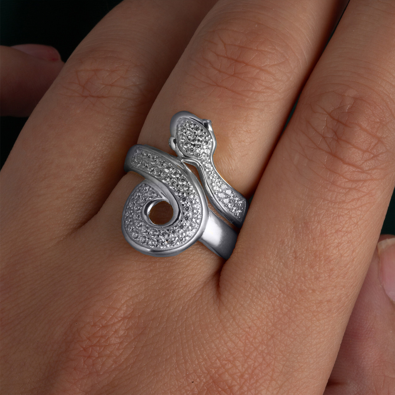 как выглядит .925 Sterling Silver CZ Studded Coiled Snake Band Ring фото
