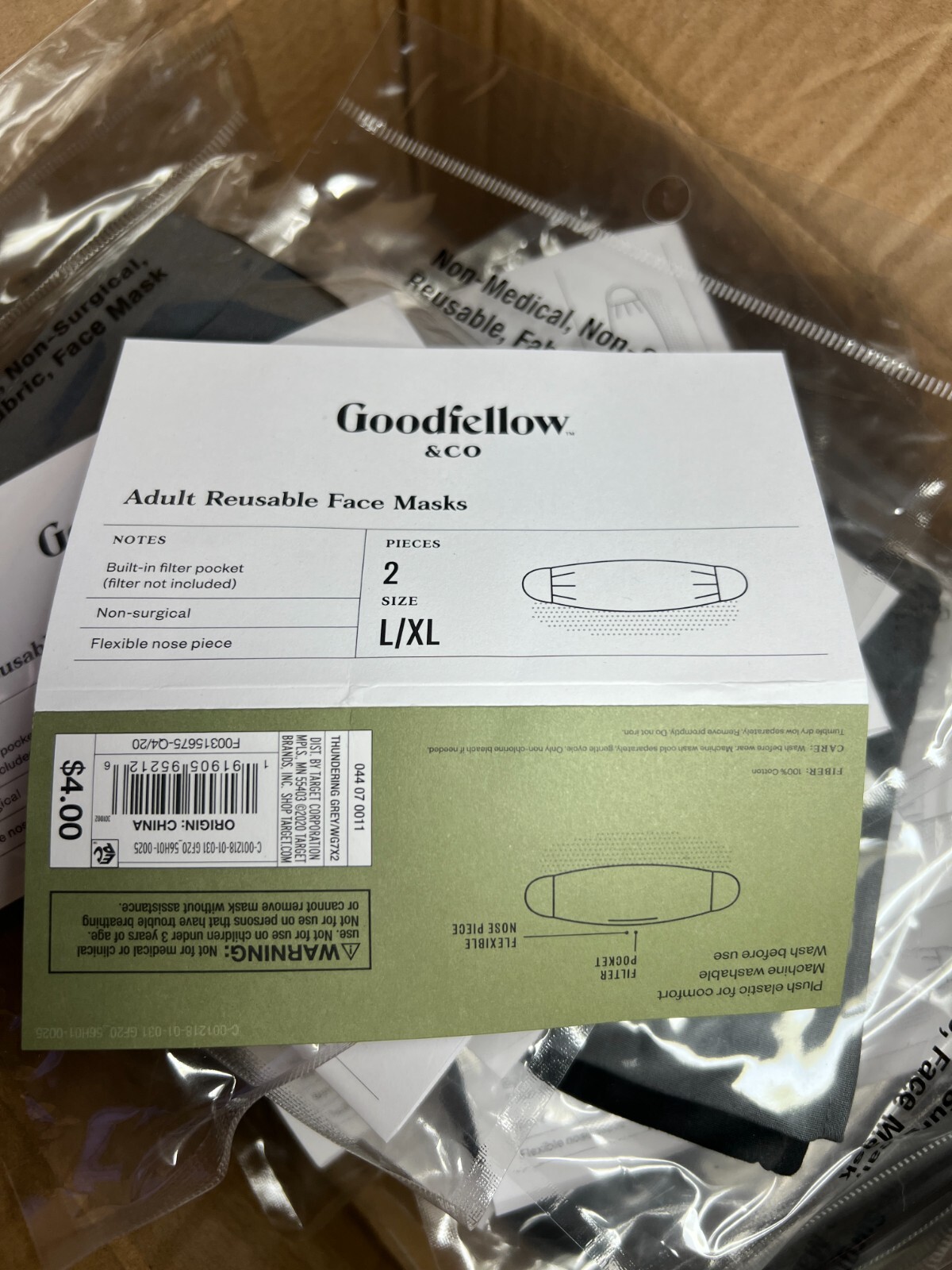 Goodfellow co Adult Reusable Fabric Face Masks Sz L/XL Black Grey 2pk 36 Total