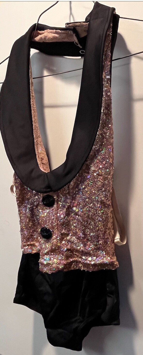 Weissman 8493 Leotard w/Gold Sequin Top Black Buttons/Collar SA