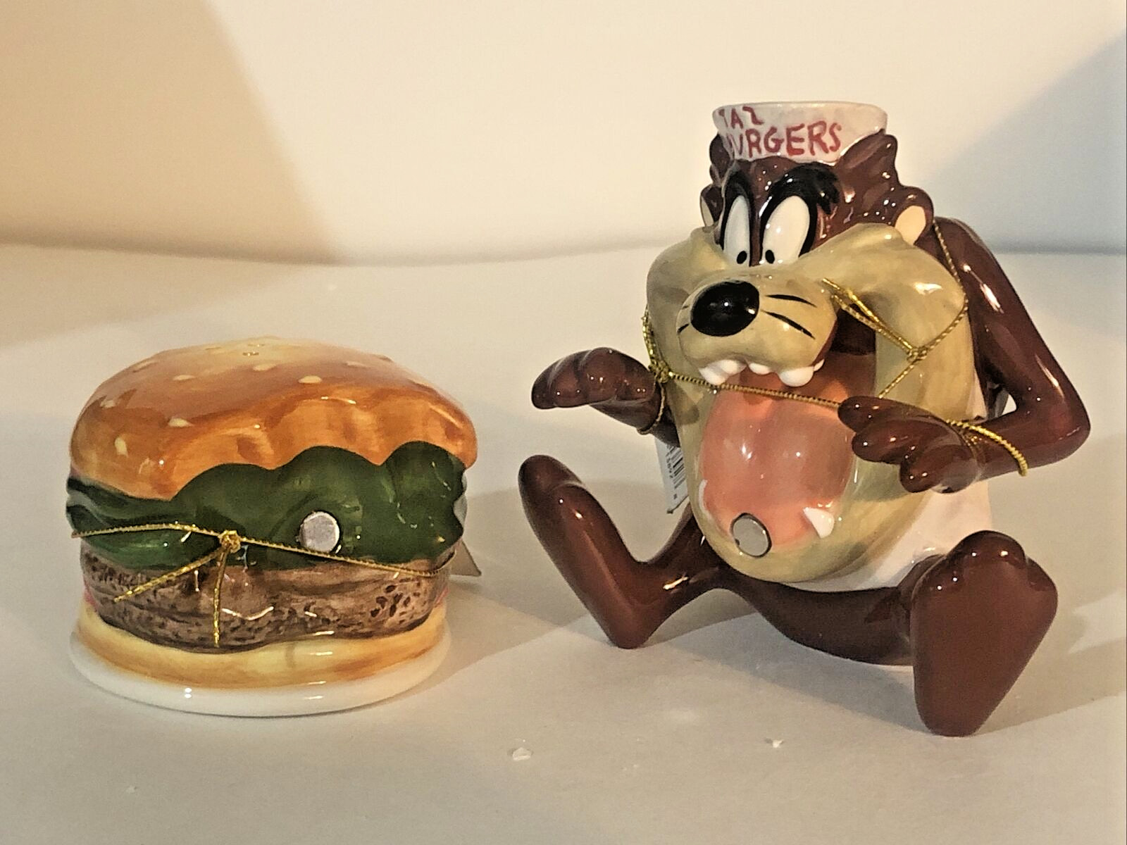 • LOONEY TUNES TAZ EATING BURGER SALT PEPPER SHAKERS MAGNETIC WESTLAND NEW