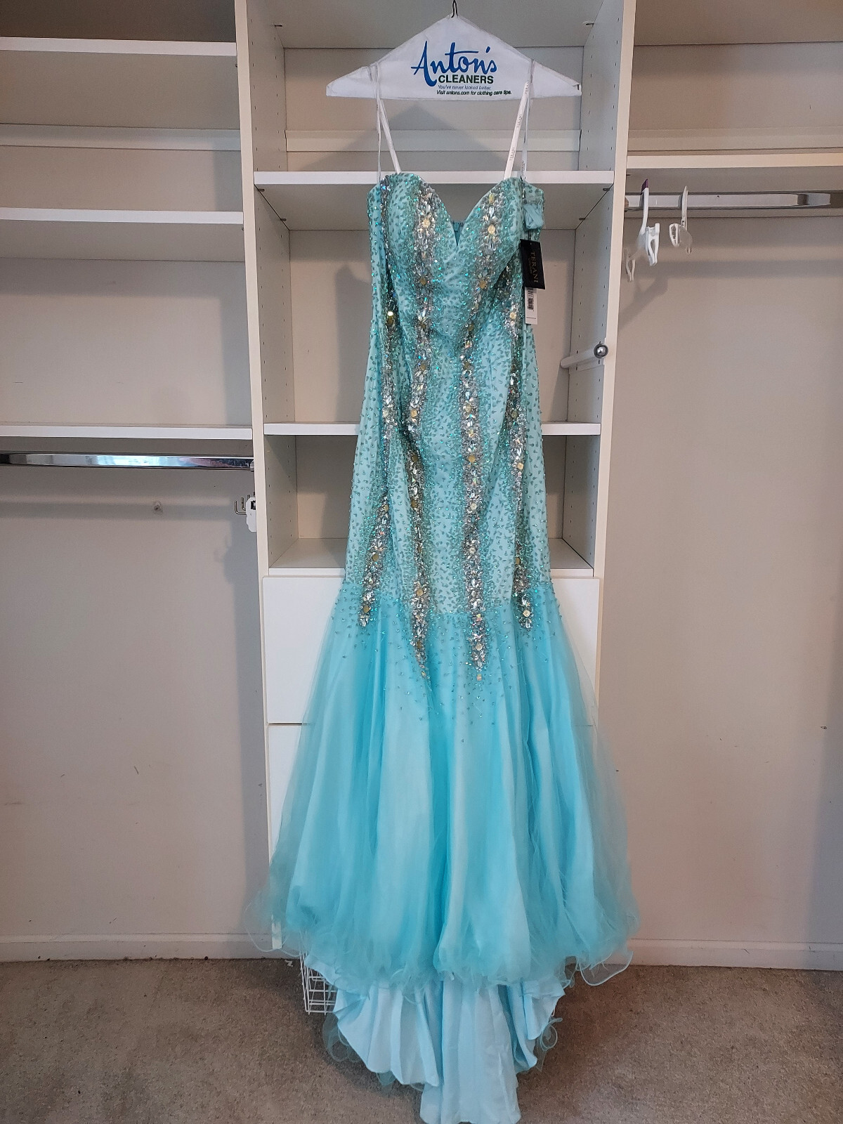 NWT Terani Couture Aqua Strapless Mermaid Formal Prom Evening sz 8 - Exquisite