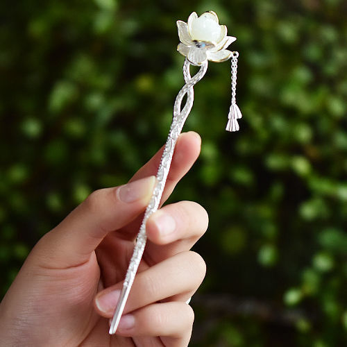 как выглядит Chinese Retro Female Lotus Flower Hairpin Hanfu Ancient Style Hairpin Headdress фото