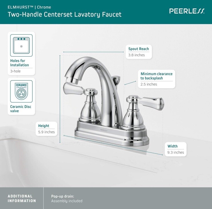 как выглядит Peerless P2565LF Elmhurst Two Handle Bath Faucet Centerset, Chrome. Free Shippi фото