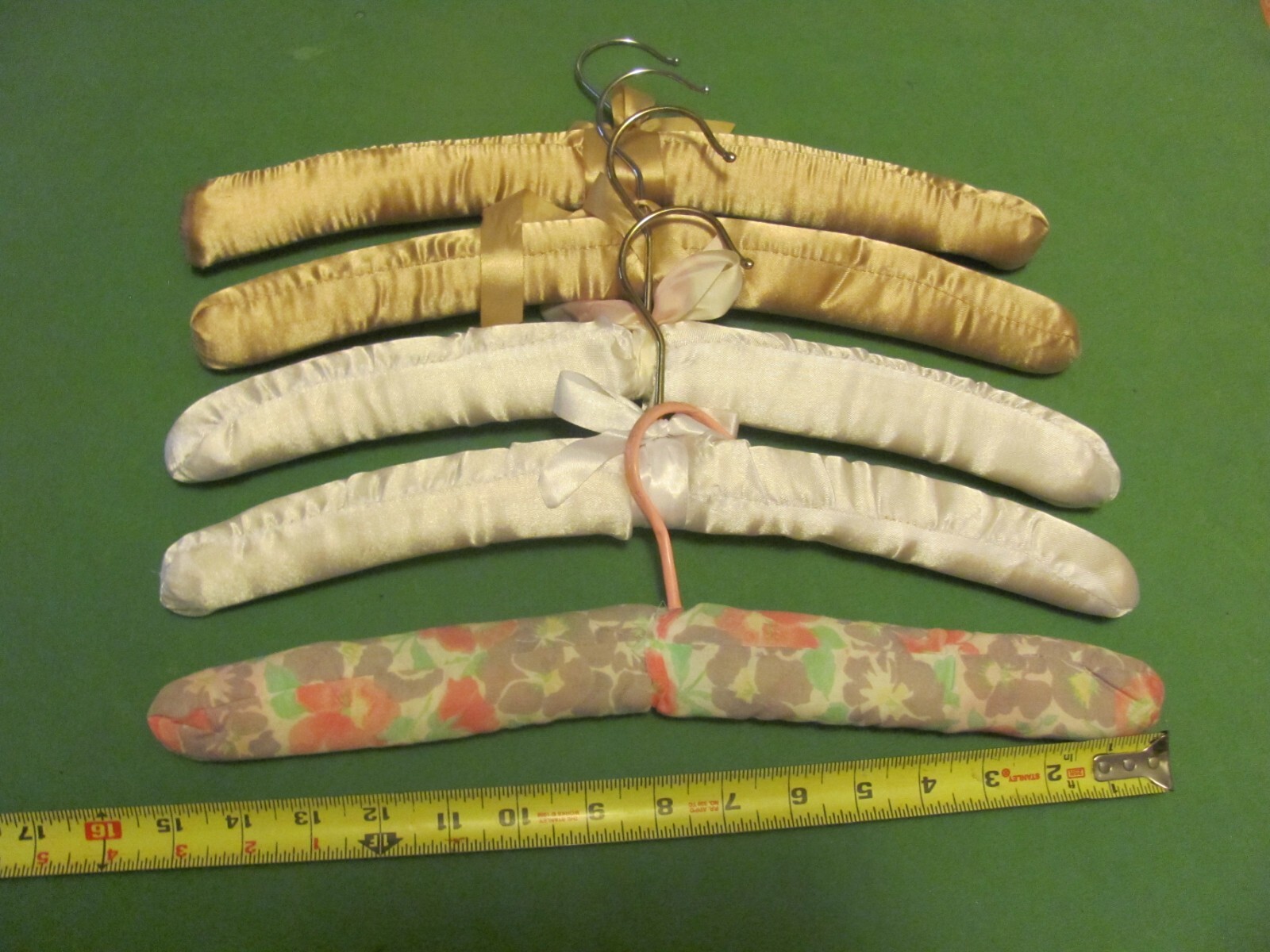 как выглядит 5 Vintage Padded Clothes Hangers - 4 White Satin Silky 1 Cloth with Flowers. фото