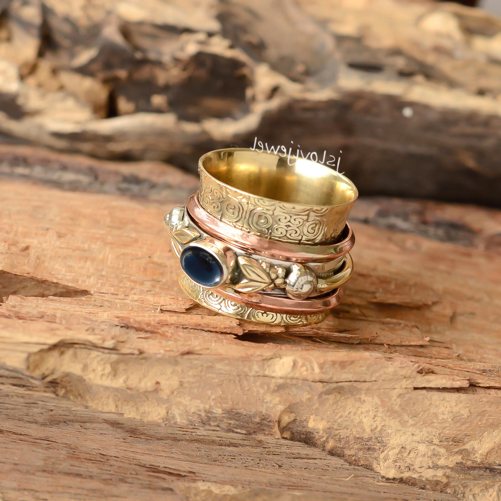 как выглядит Black Onyx Oval Gemstone 925 Sterling Silver Spinner Women Ring фото