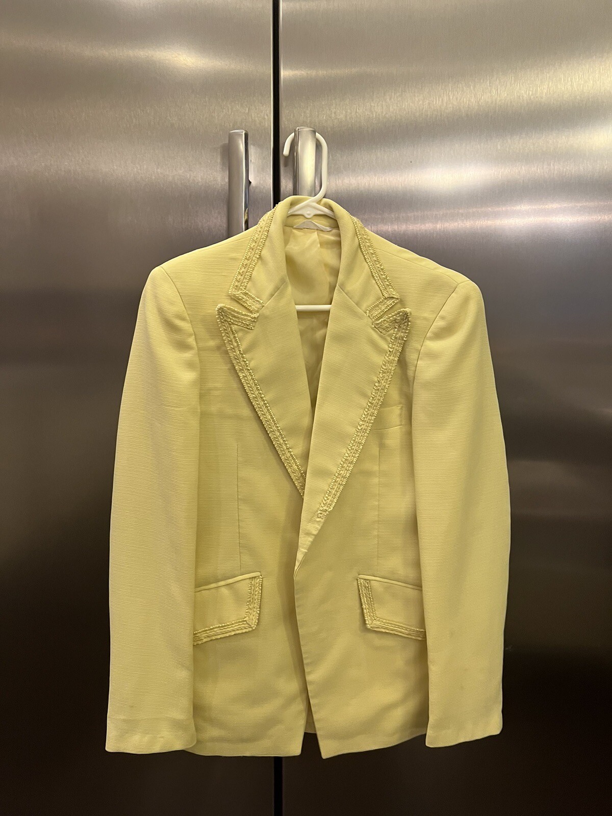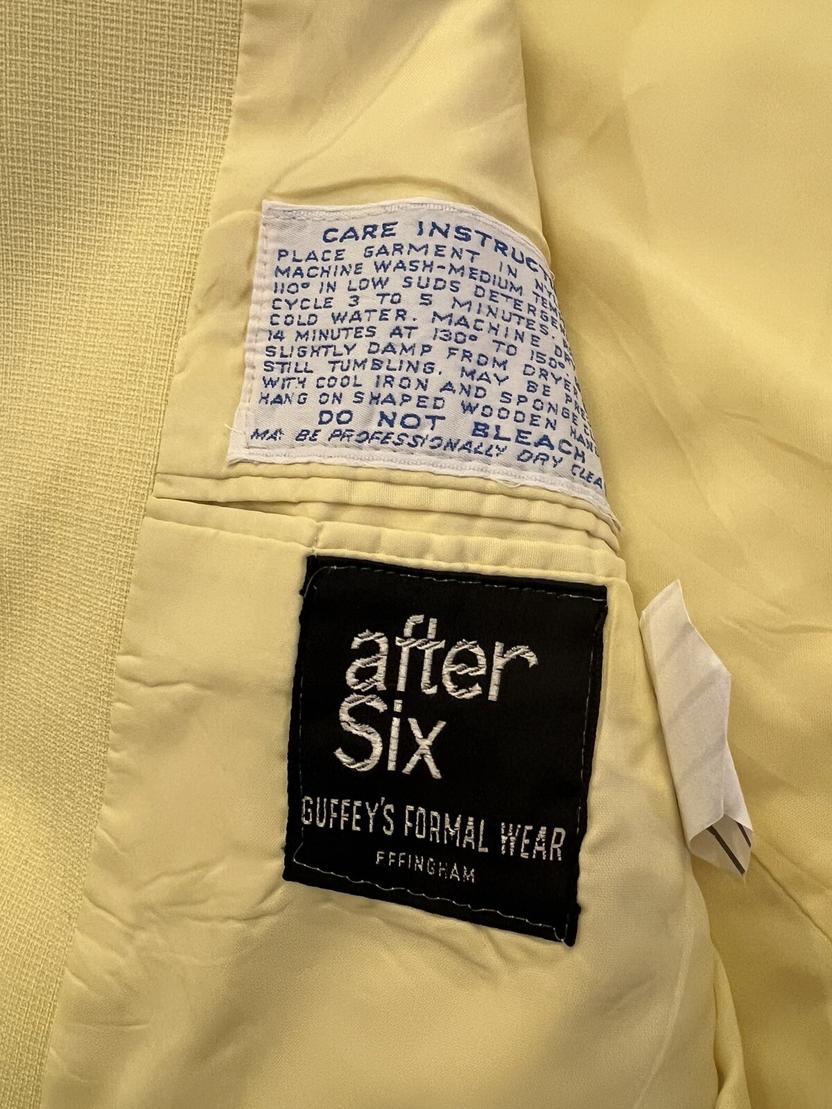 как выглядит VINTAGE AFTER SIX Yellow MENS TUXEDO JACKET Guffey s Formal Wear Small Retro фото