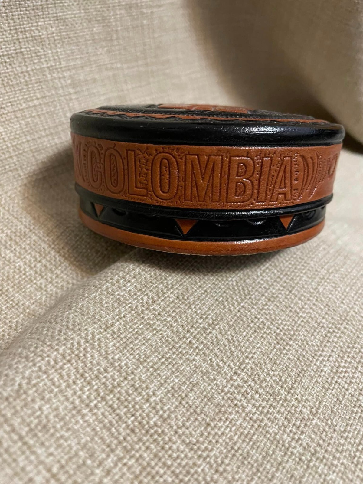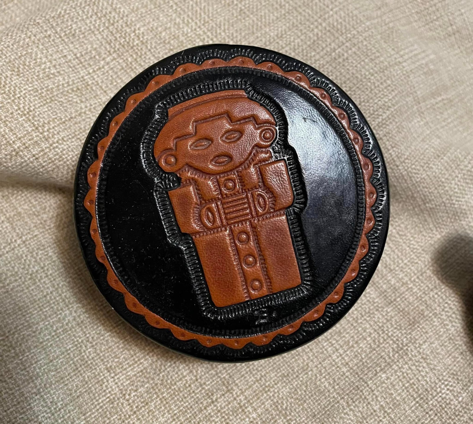 как выглядит Vintage Hand tooled thick leather coasters from Columbia, set of 6 фото