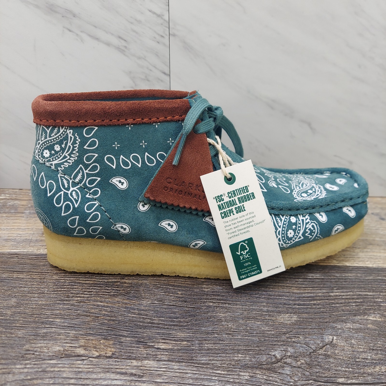 как выглядит Clarks Originals Wallabee Leather Shoes Green Paisley 68743 Womens Size 6 фото