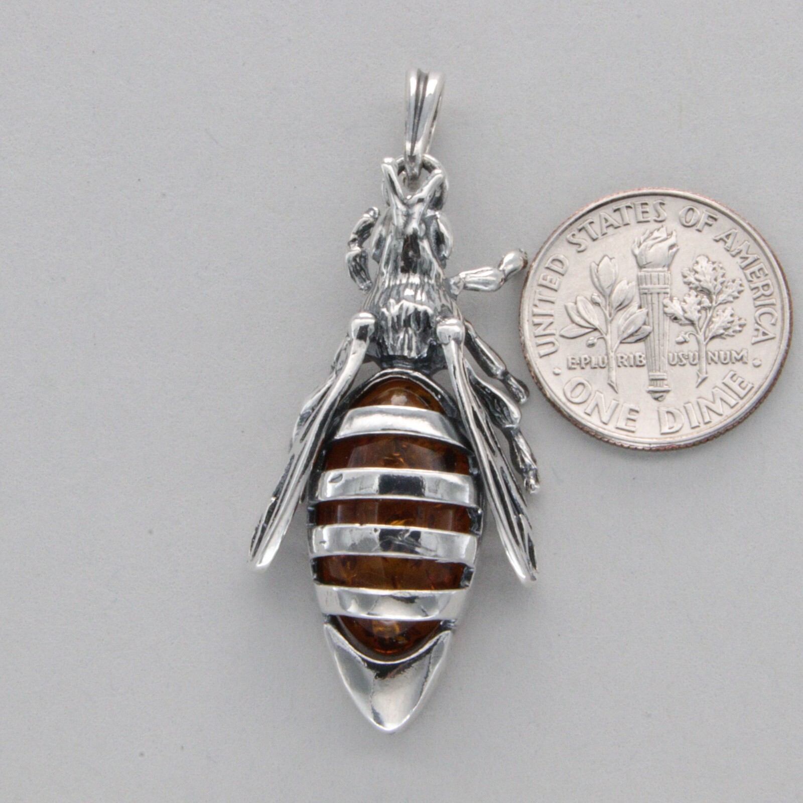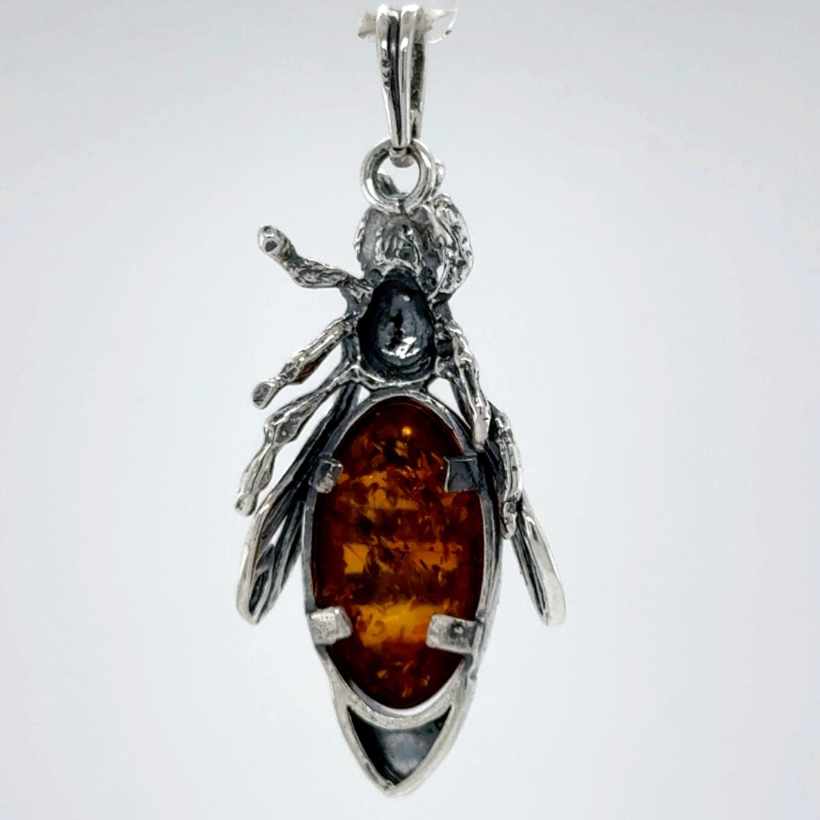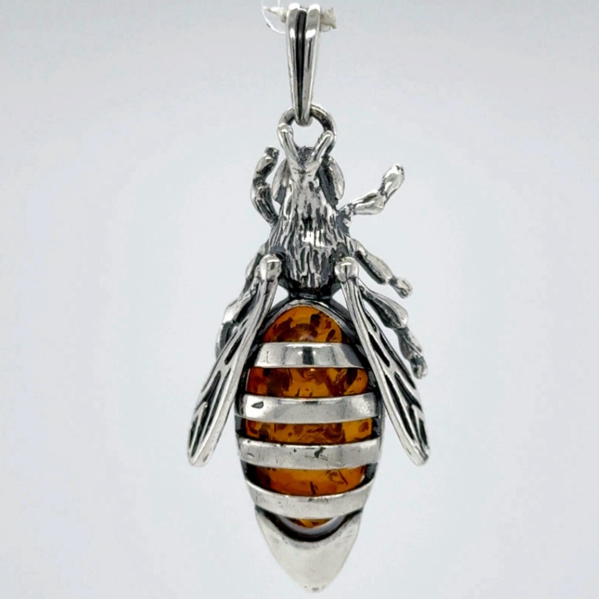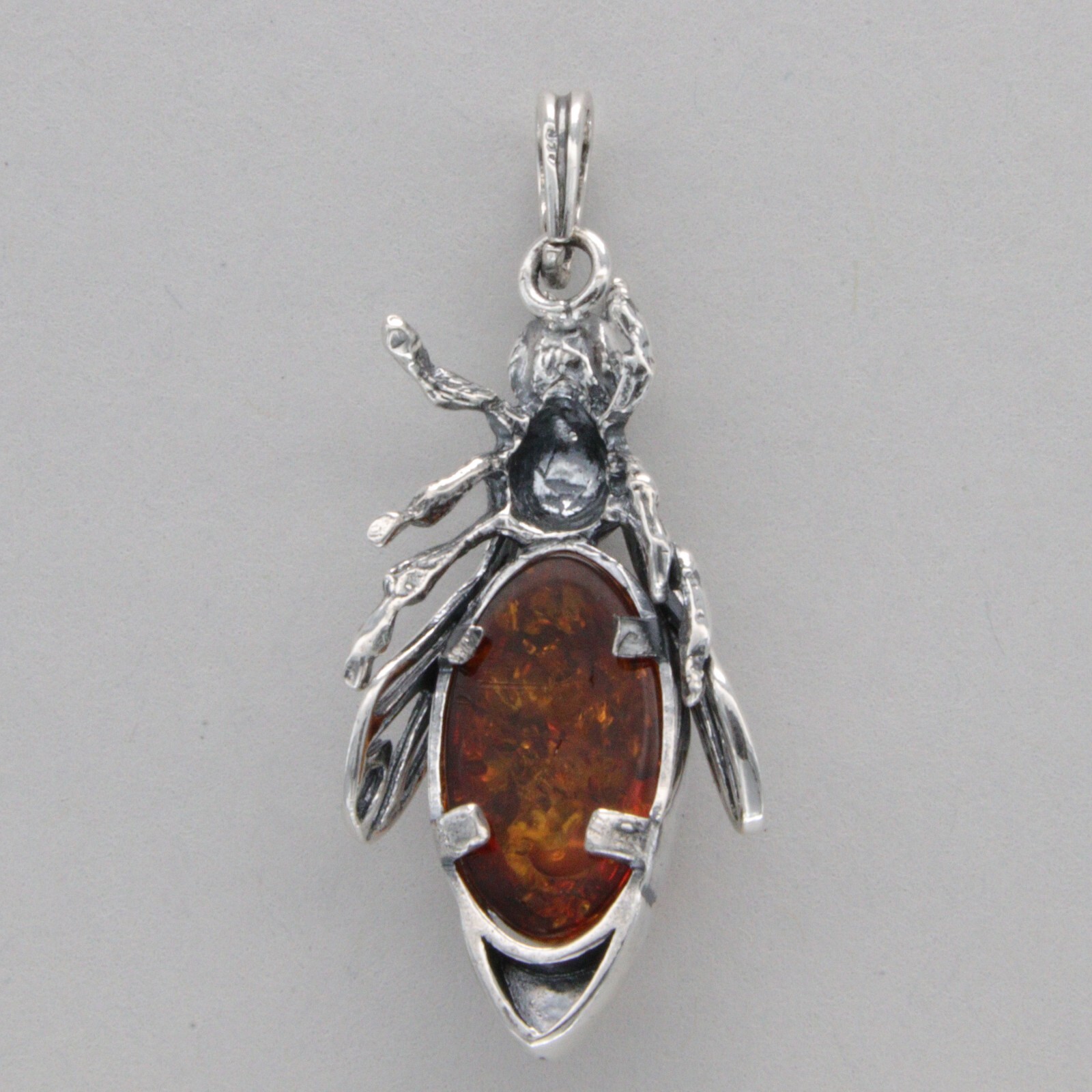 Cognac / Brown BALTIC AMBER Honey Bee Pendant 925 STERLING SILVER - Poland 3338e