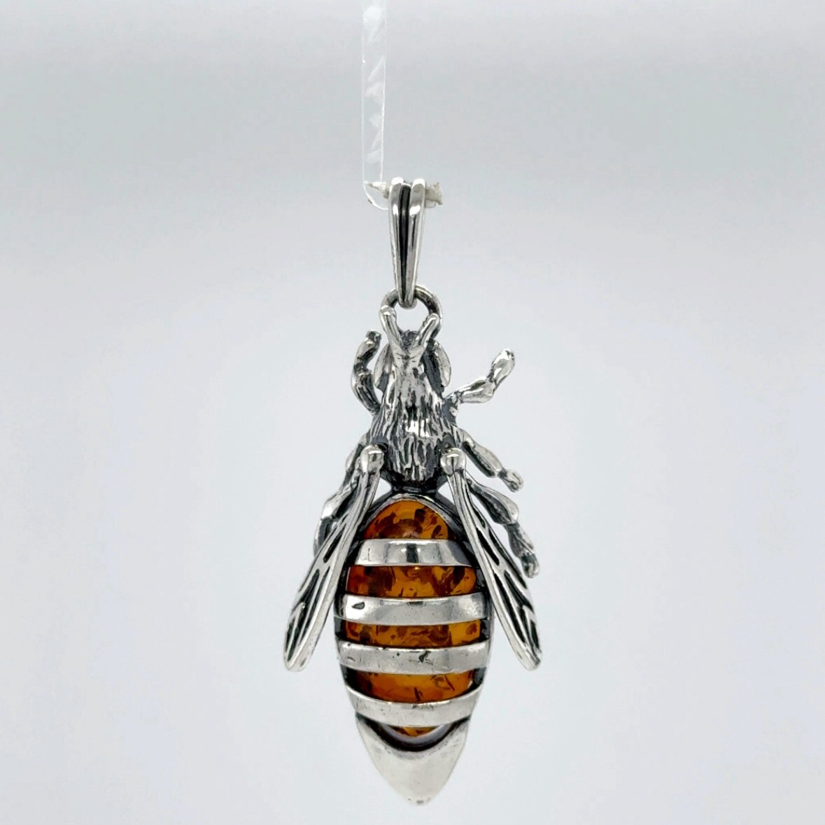 как выглядит Cognac / Brown BALTIC AMBER Honey Bee Pendant 925 STERLING SILVER - Poland 3338e фото